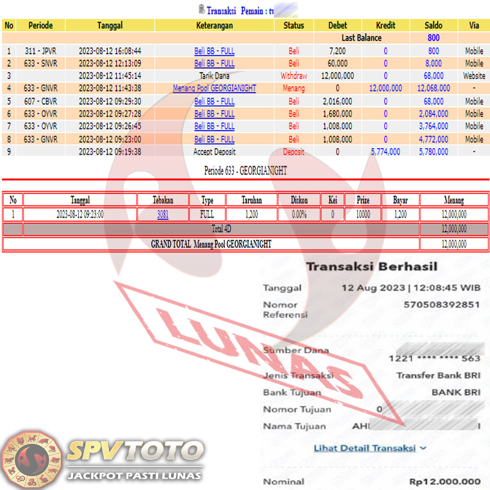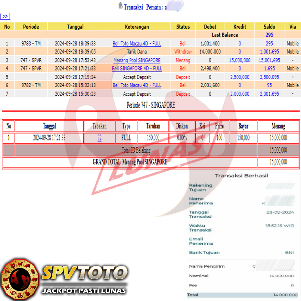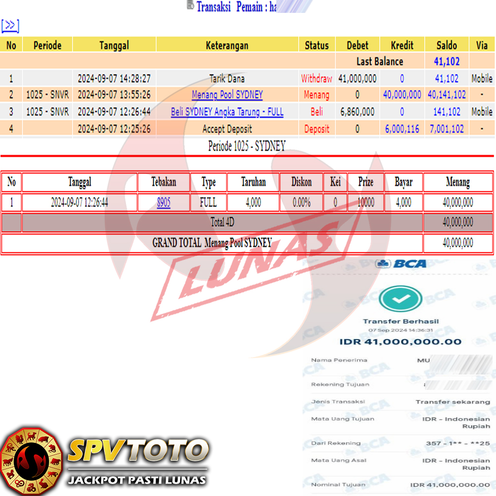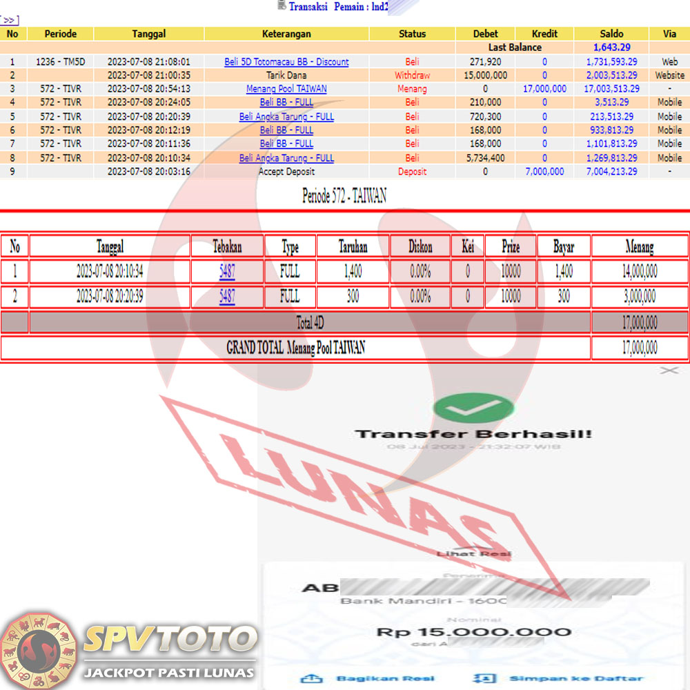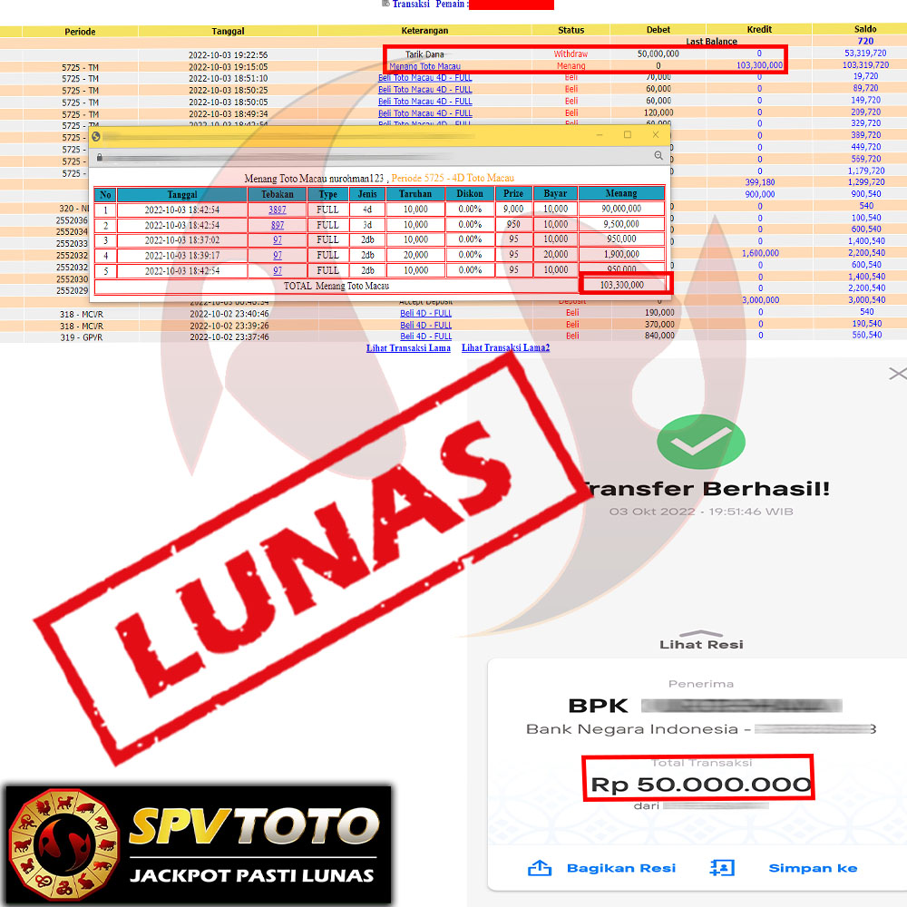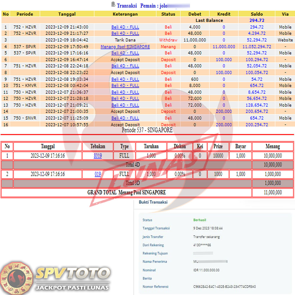 SELAMAT KEPADA MEMBER YANG MENDAPATKAN JACKPOT DI SPVTOTO