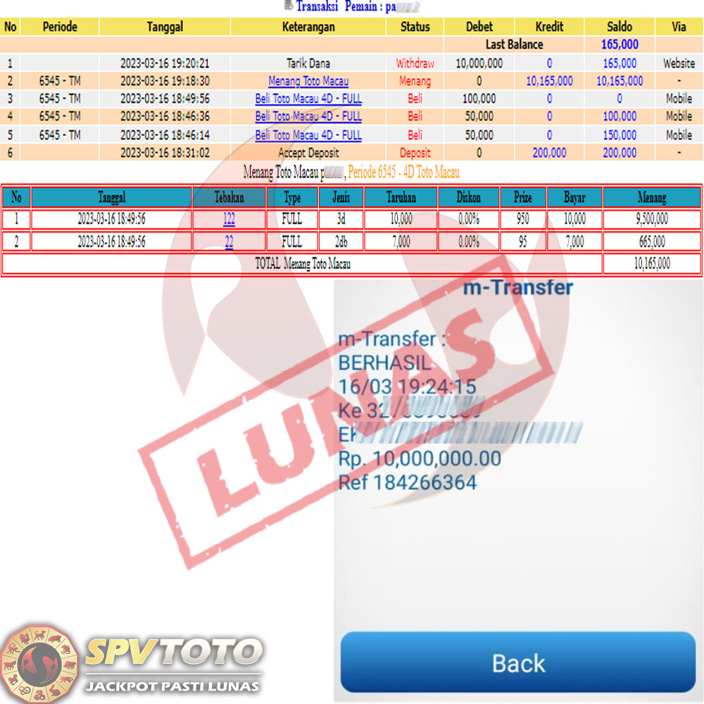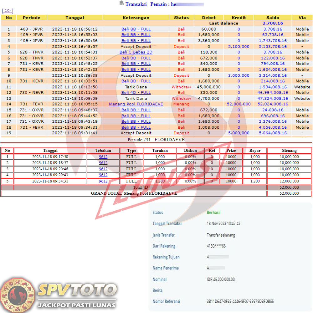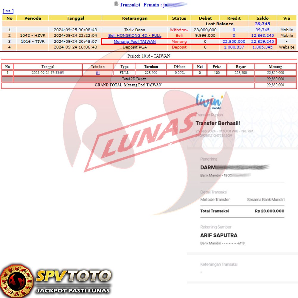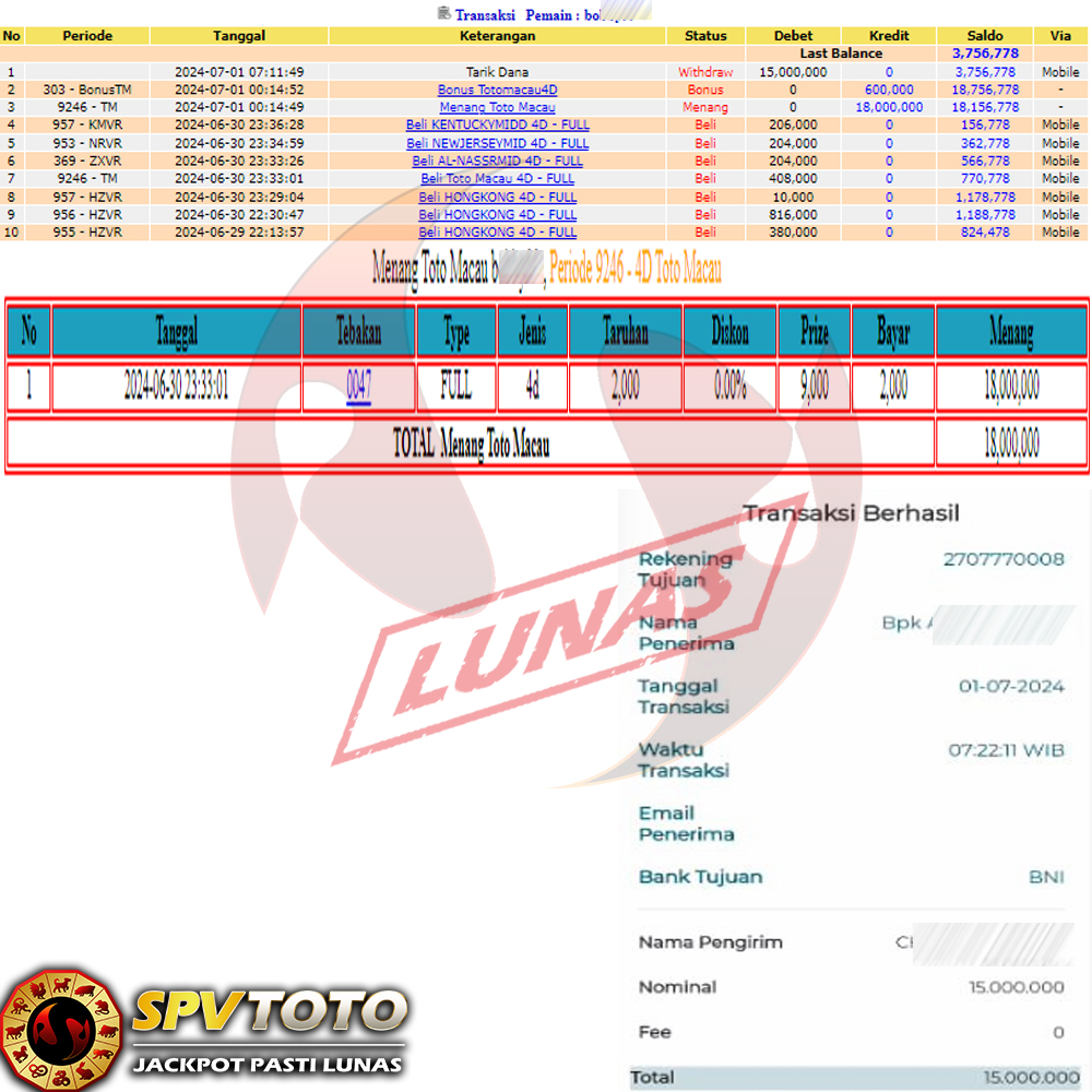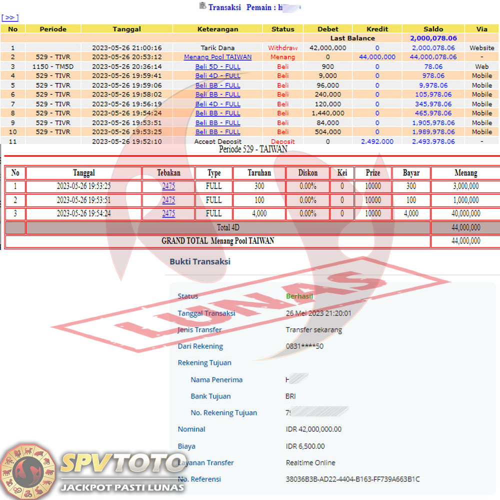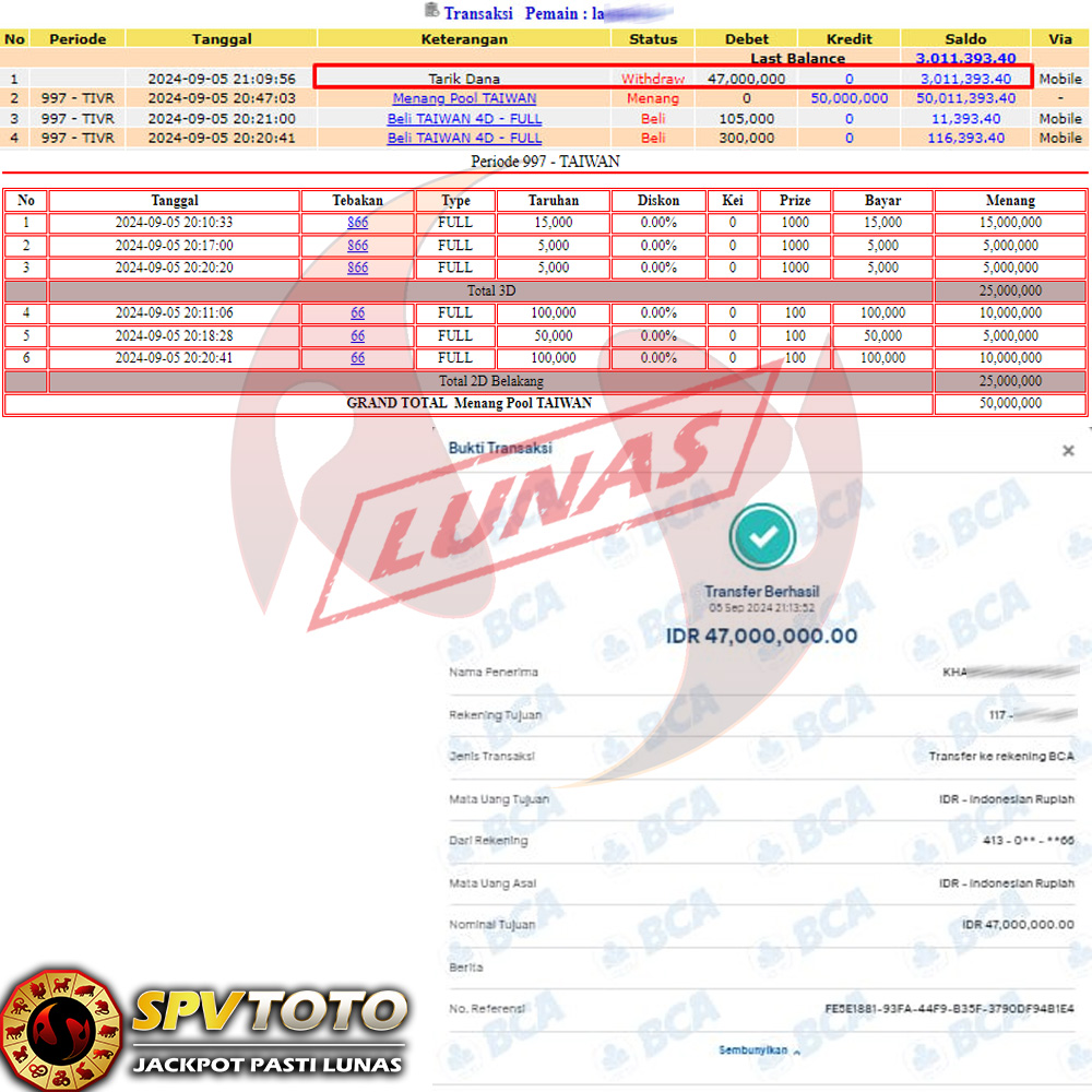 SELAMAT KEPADA MEMBER YANG MENDAPATKAN JACKPOT DI SPVTOTO