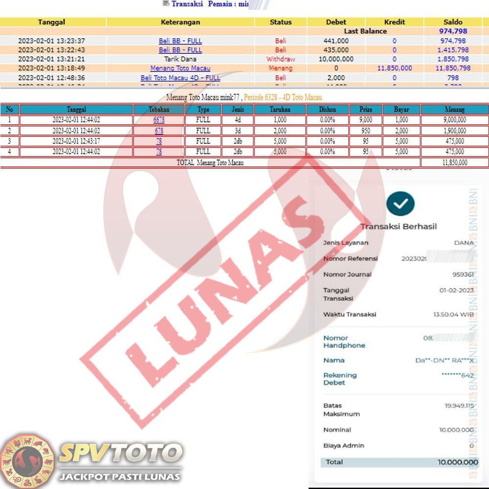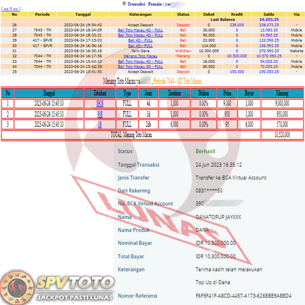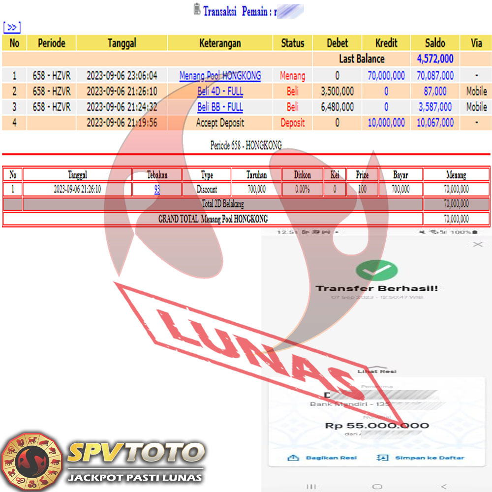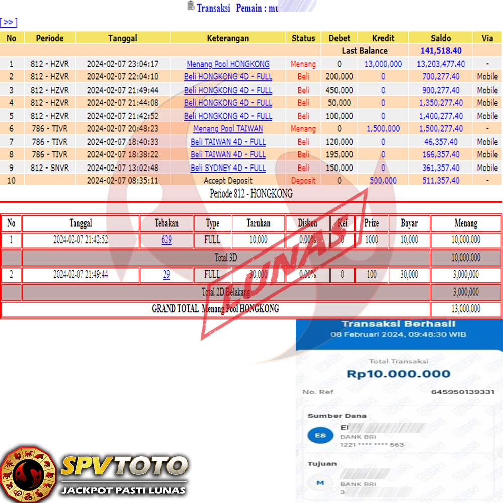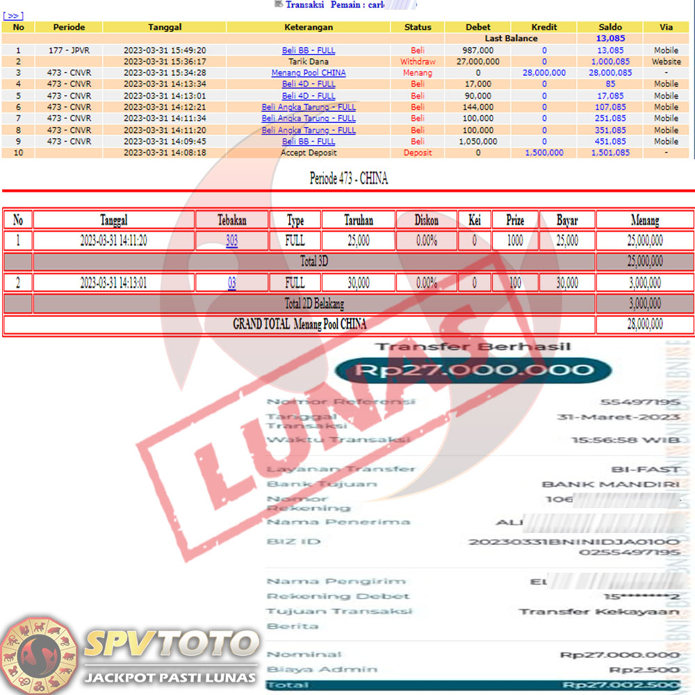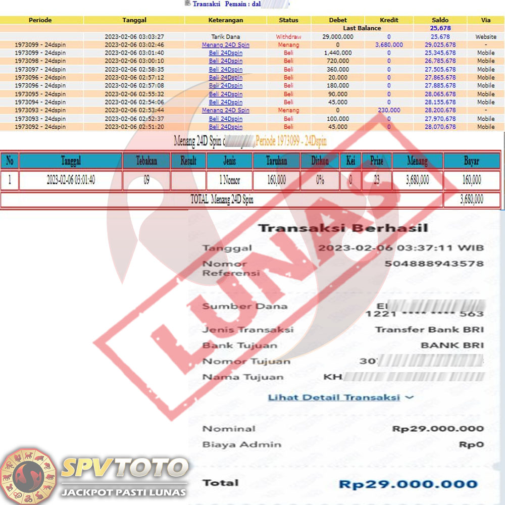 SELAMAT KEPADA MEMBER YANG MENDAPATKAN JACKPOT DI SPVTOTO