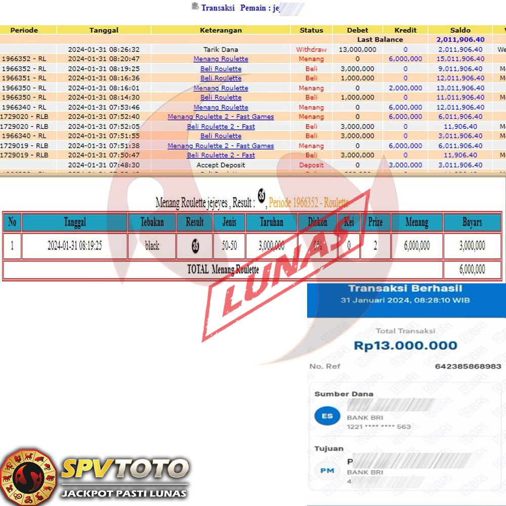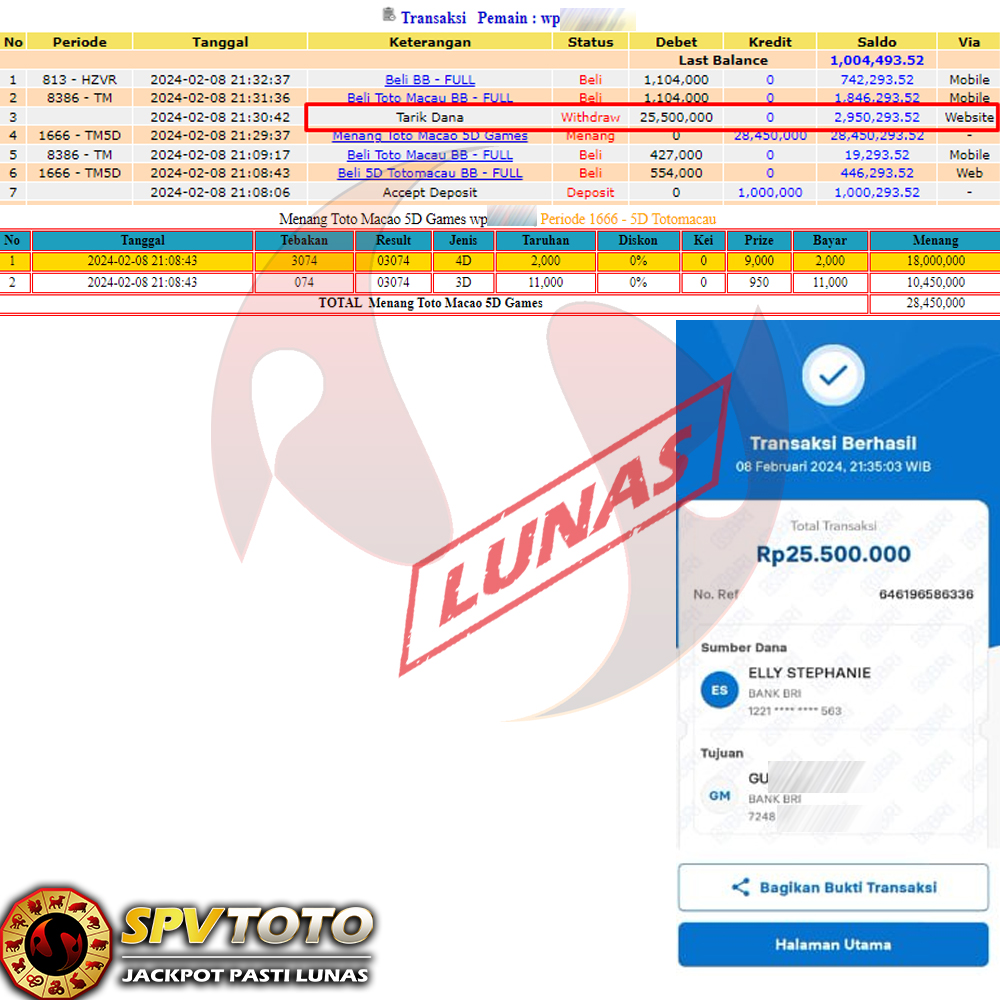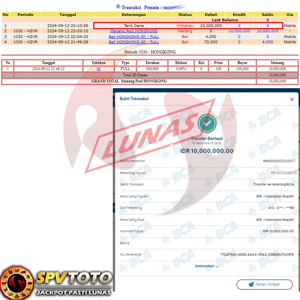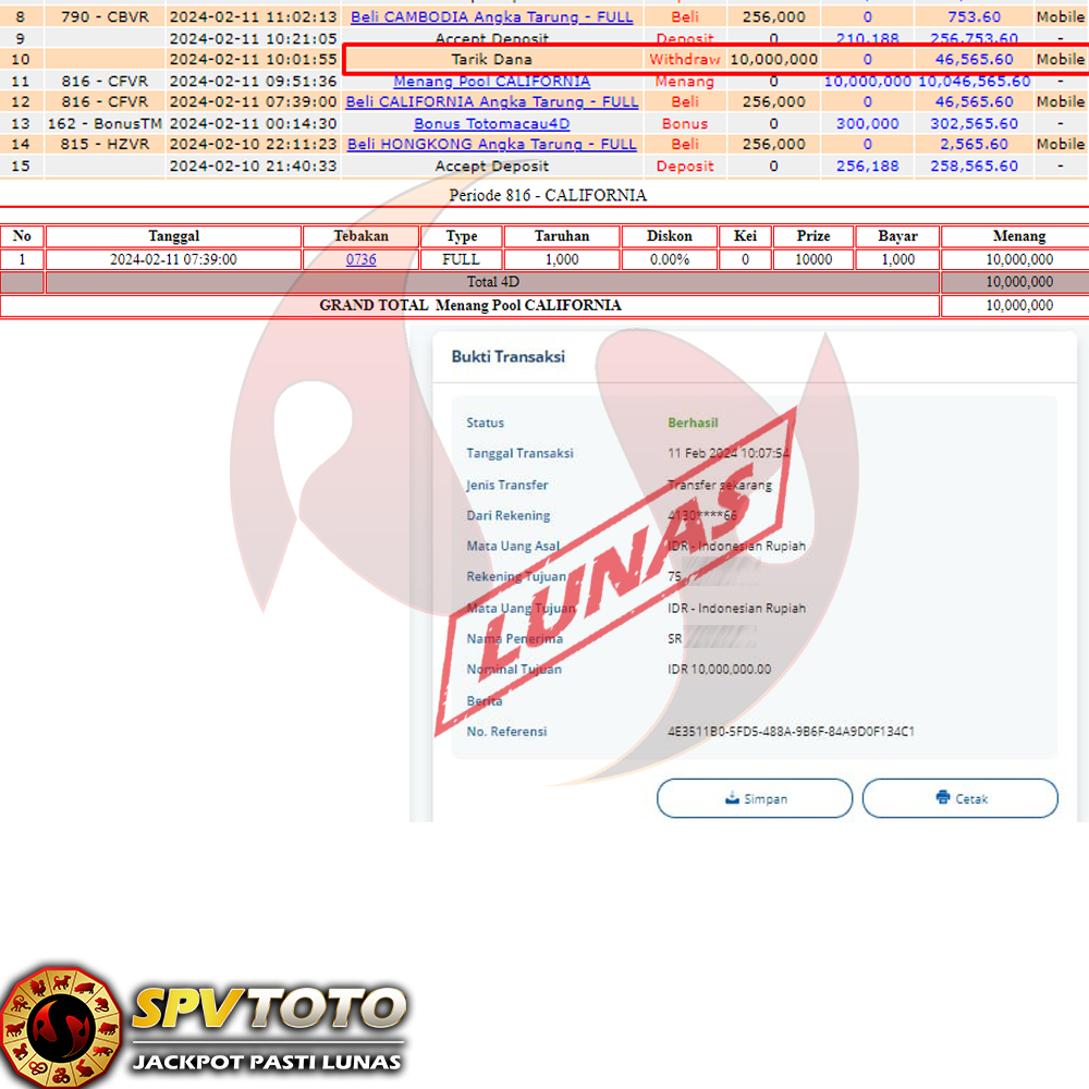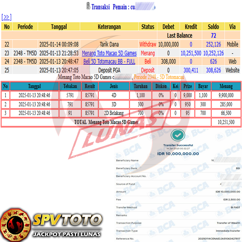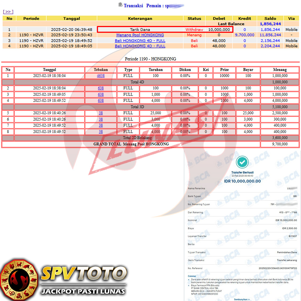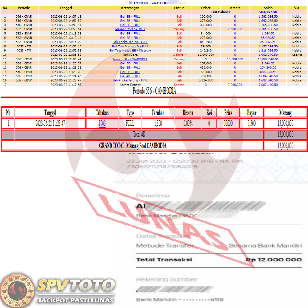 SELAMAT KEPADA MEMBER YANG MENDAPATKAN JACKPOT DI SPVTOTO