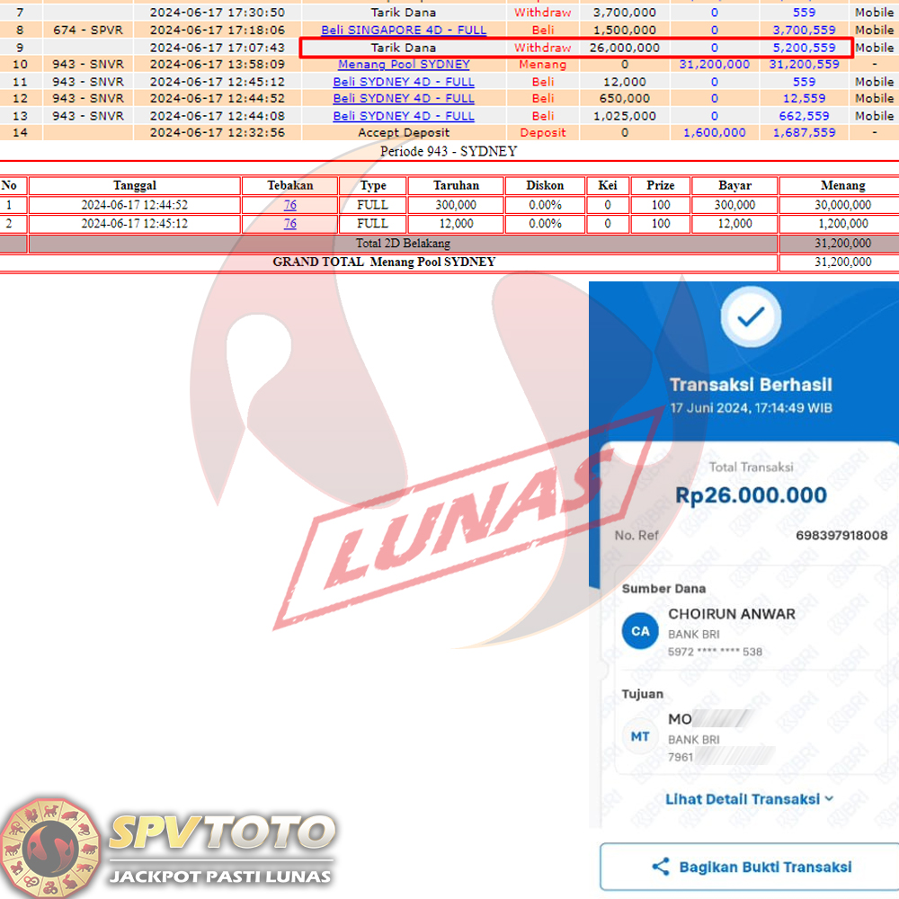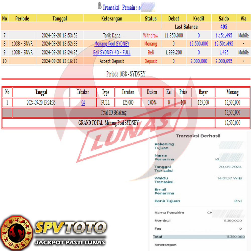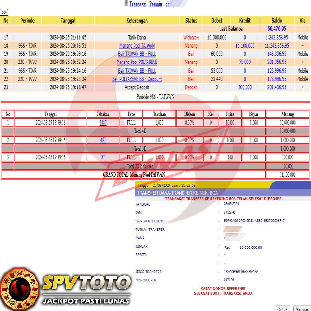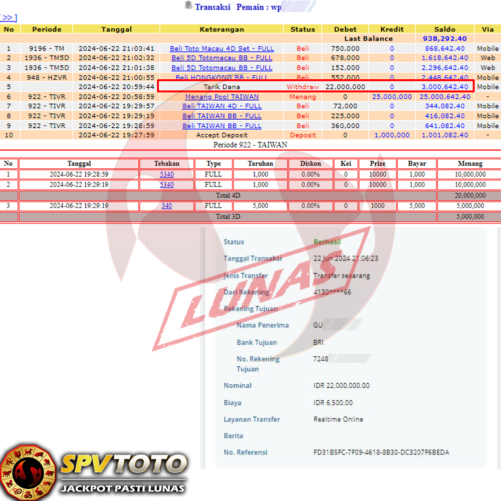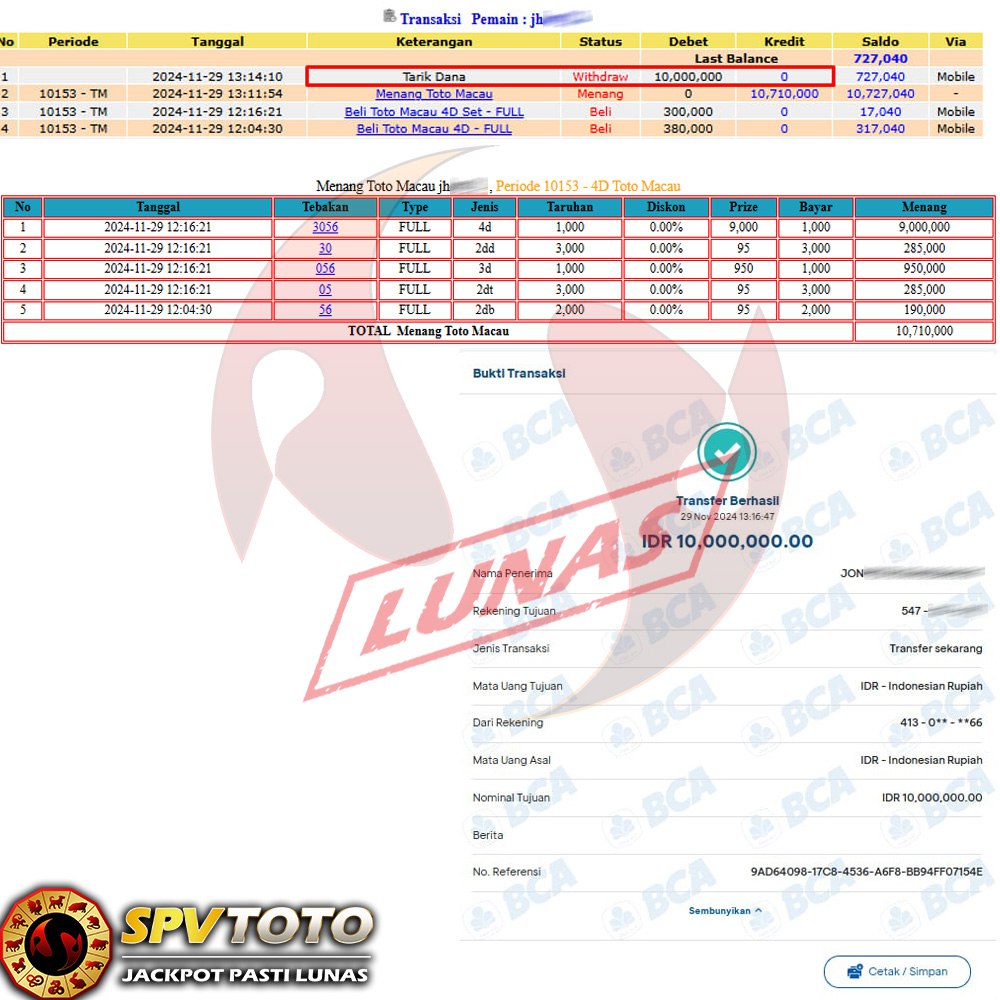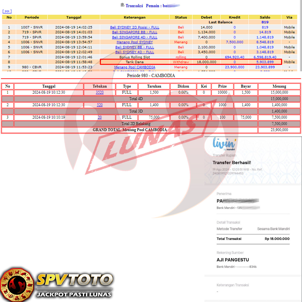 SELAMAT KEPADA MEMBER YANG MENDAPATKAN JACKPOT DI SPVTOTO