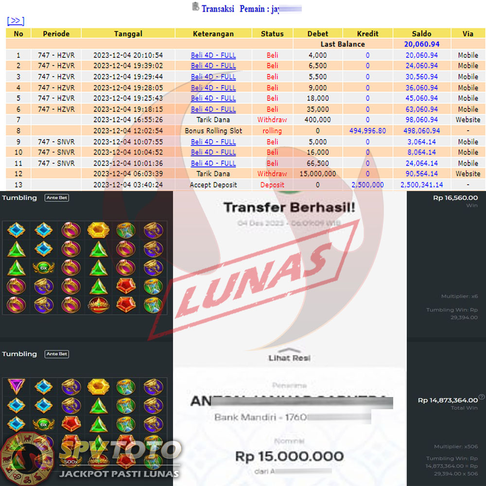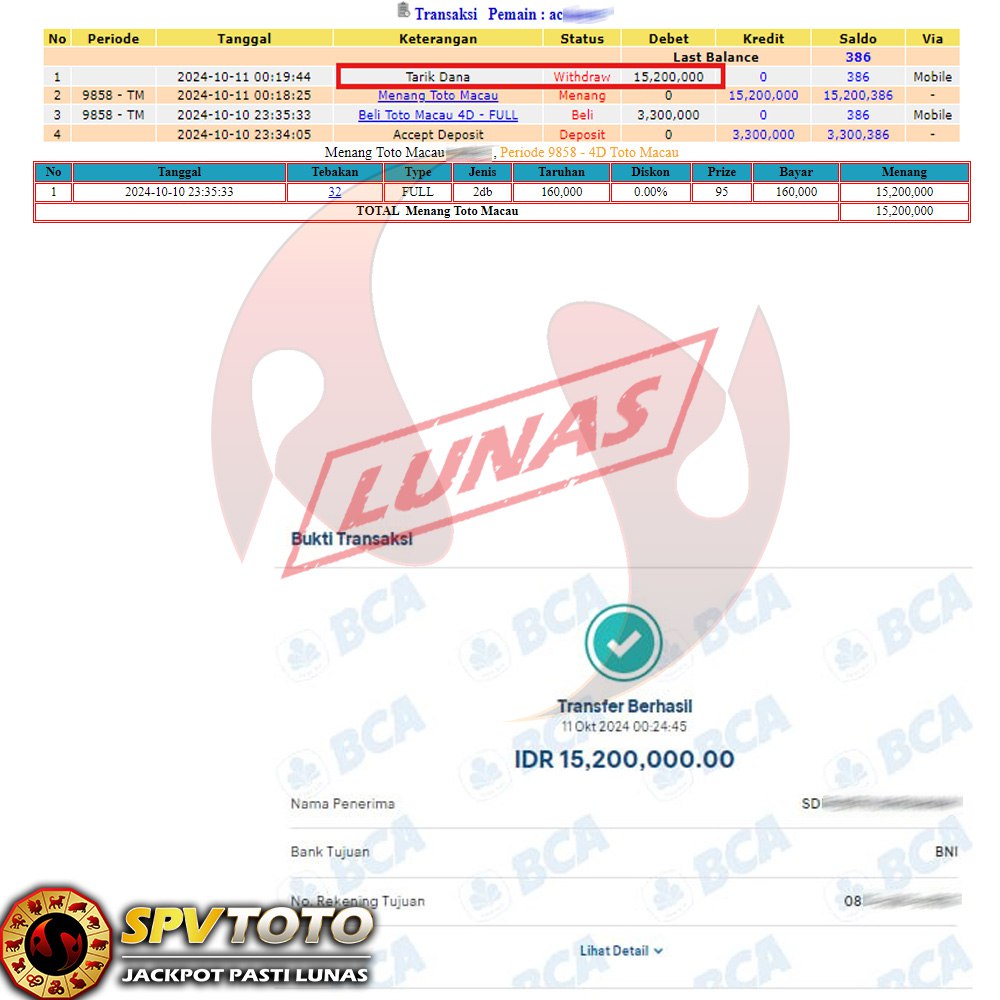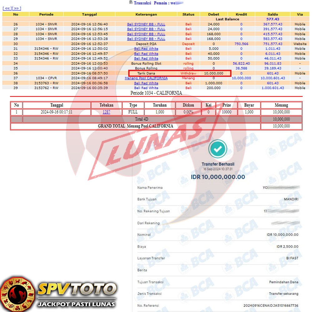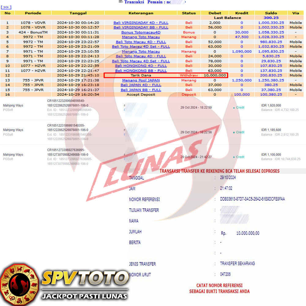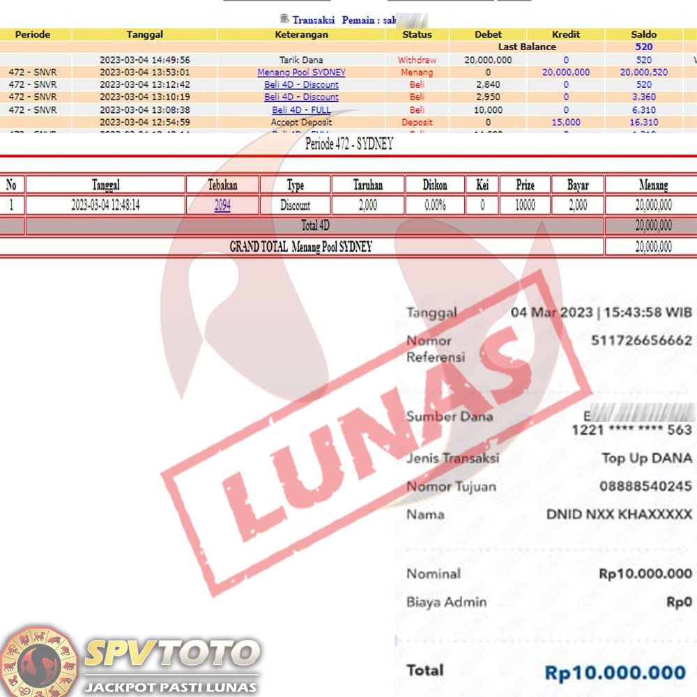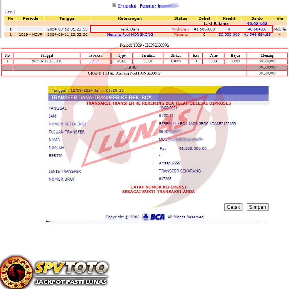 SELAMAT KEPADA MEMBER YANG MENDAPATKAN JACKPOT DI SPVTOTO