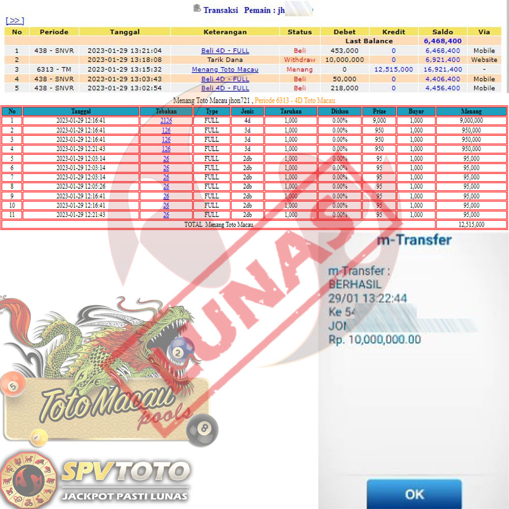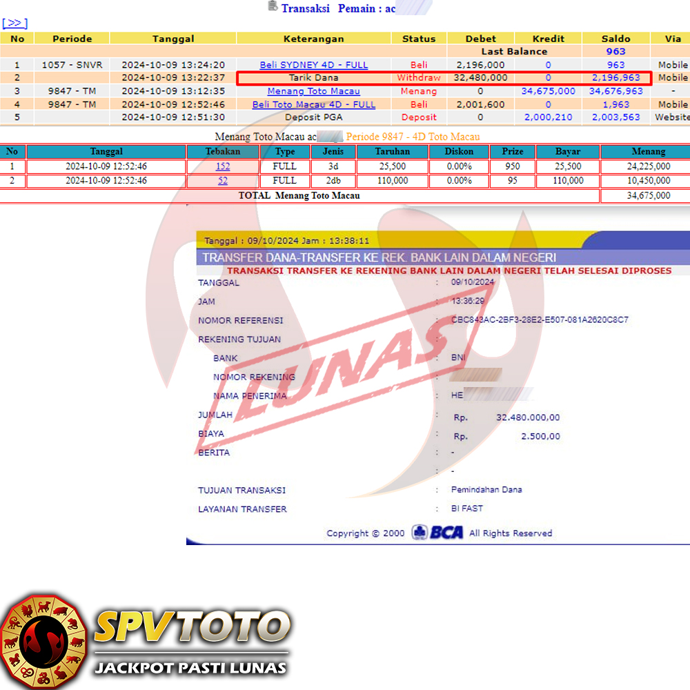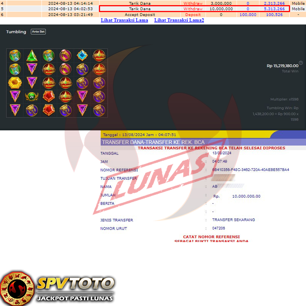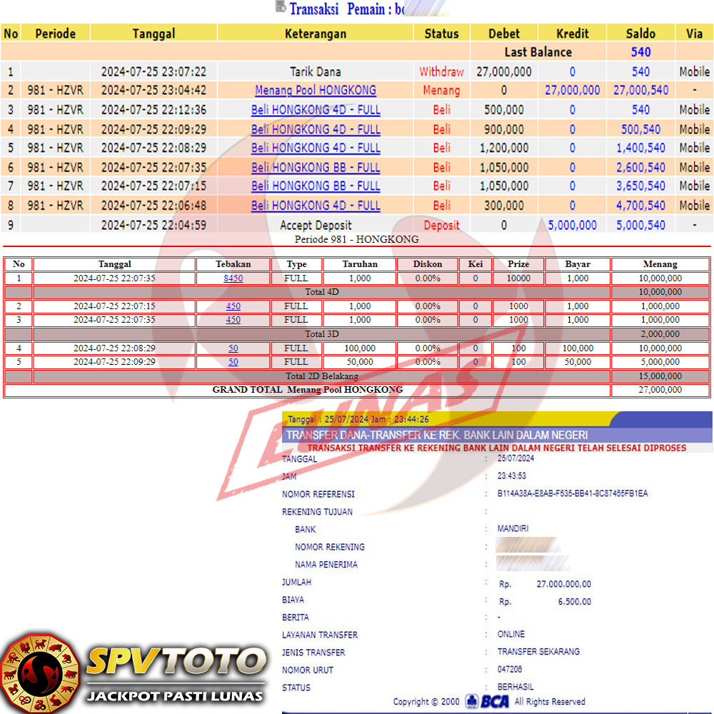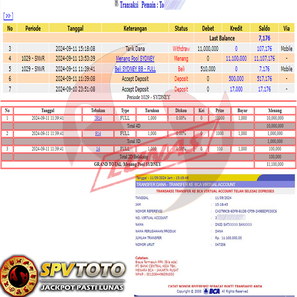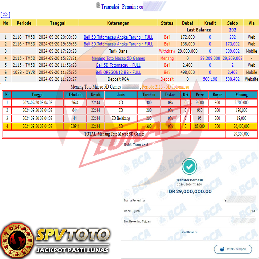 SELAMAT KEPADA MEMBER YANG MENDAPATKAN JACKPOT DI SPVTOTO
