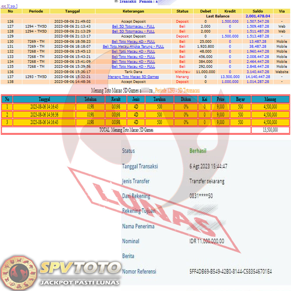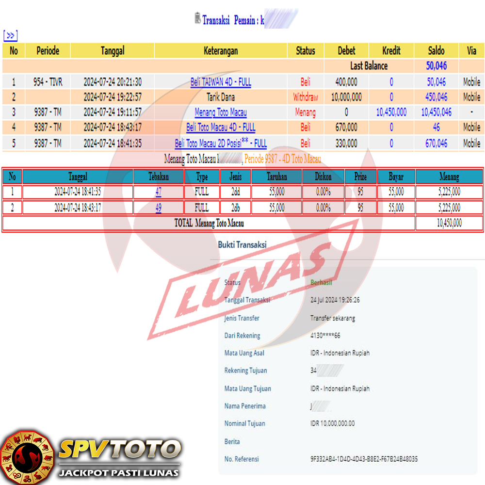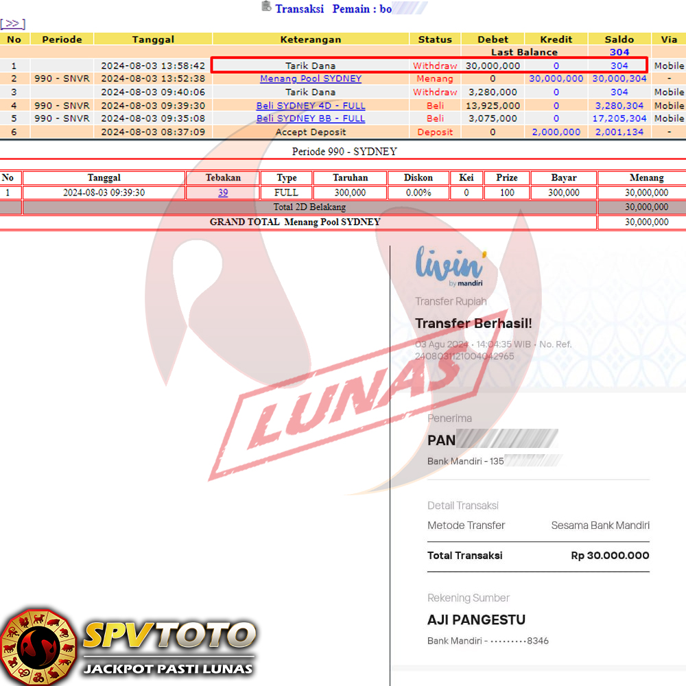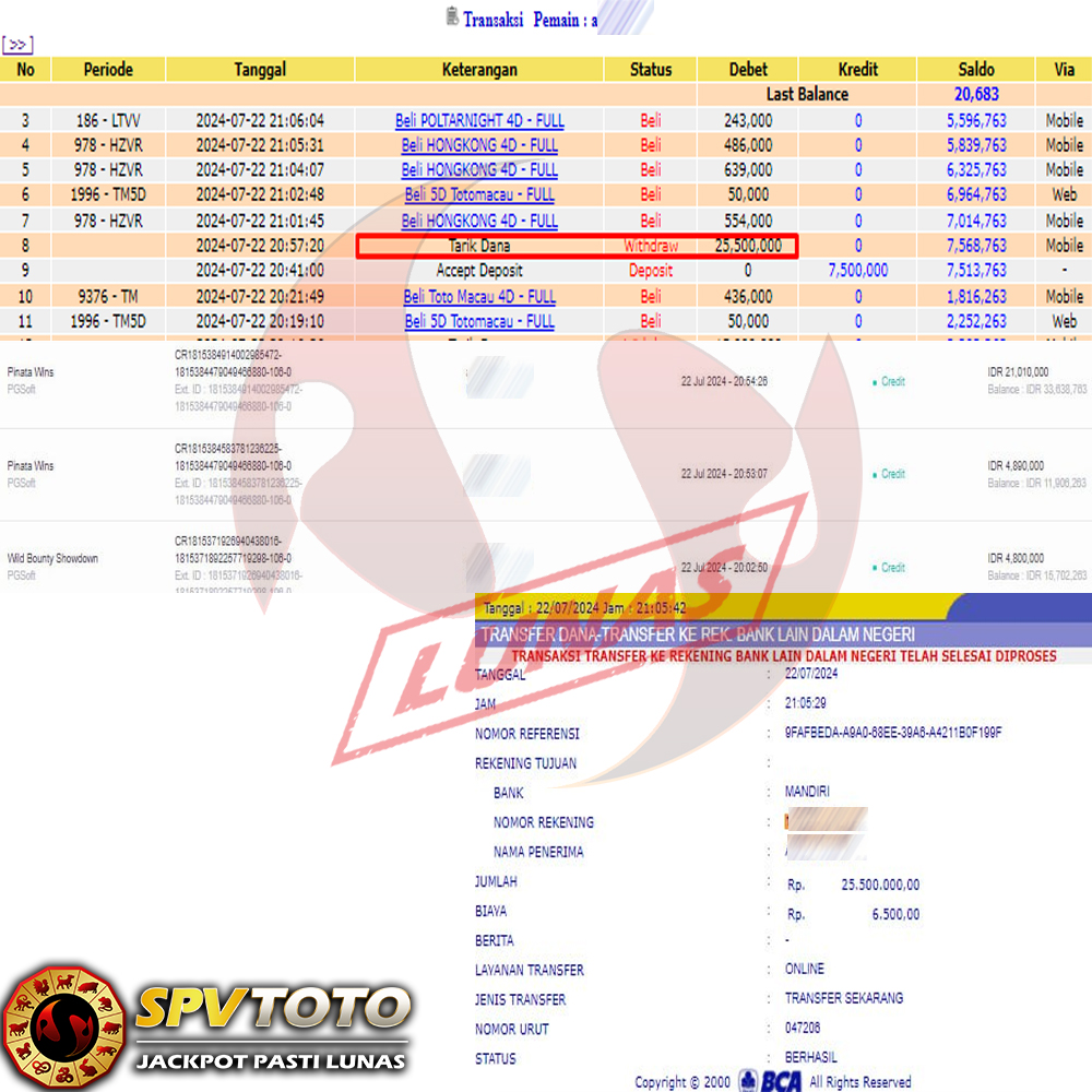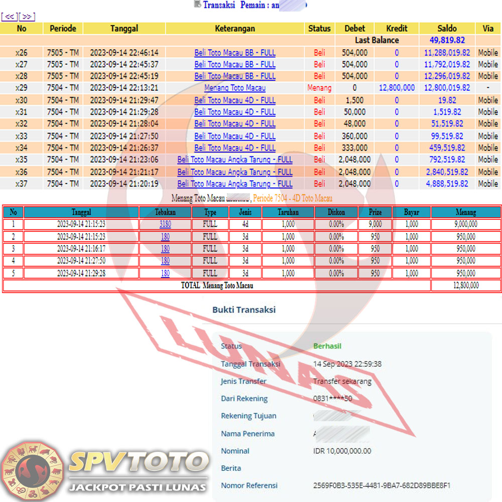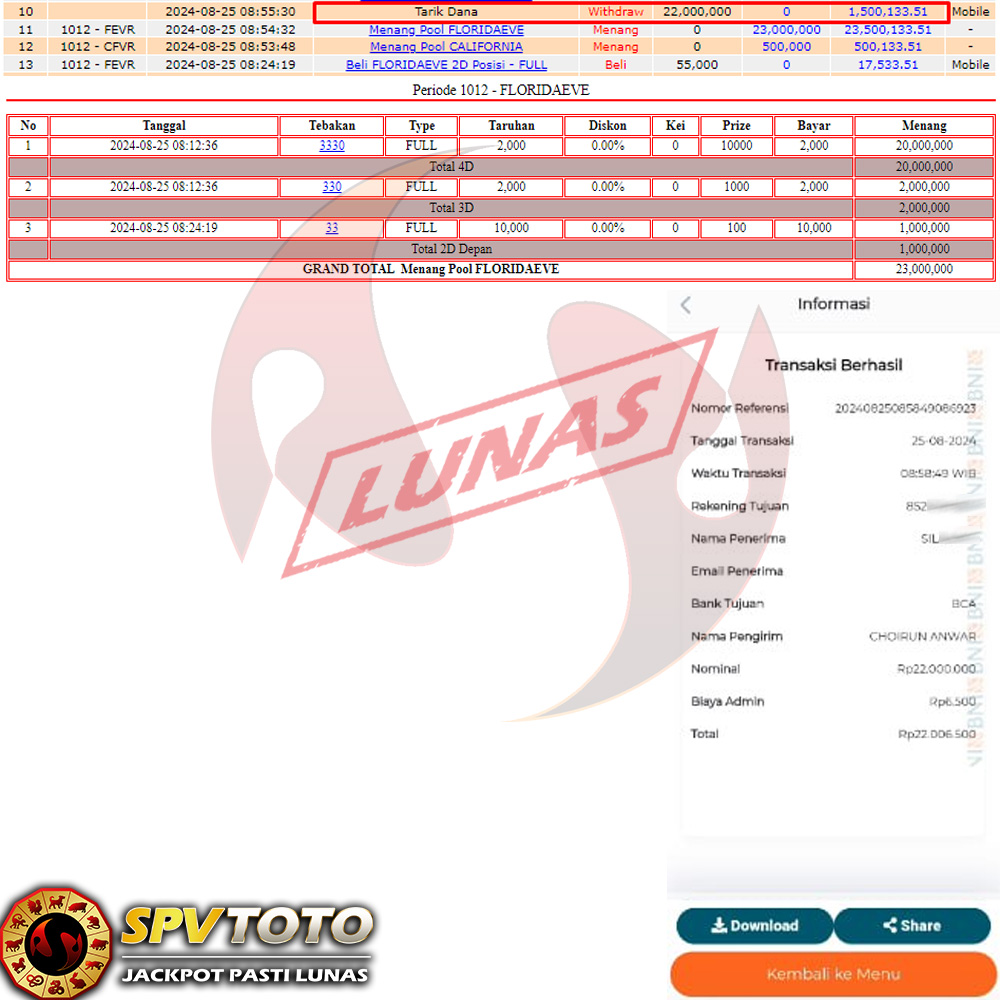 SELAMAT KEPADA MEMBER YANG MENDAPATKAN JACKPOT DI SPVTOTO