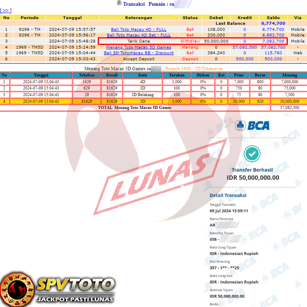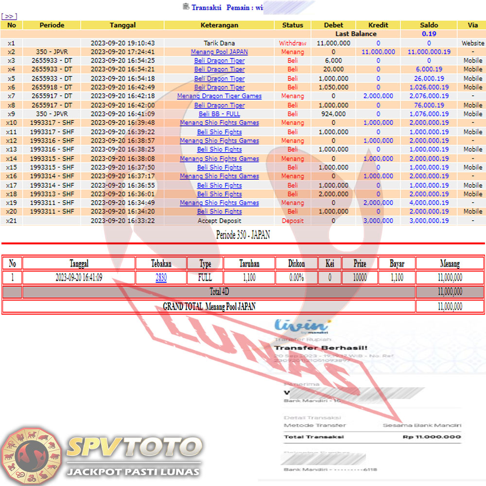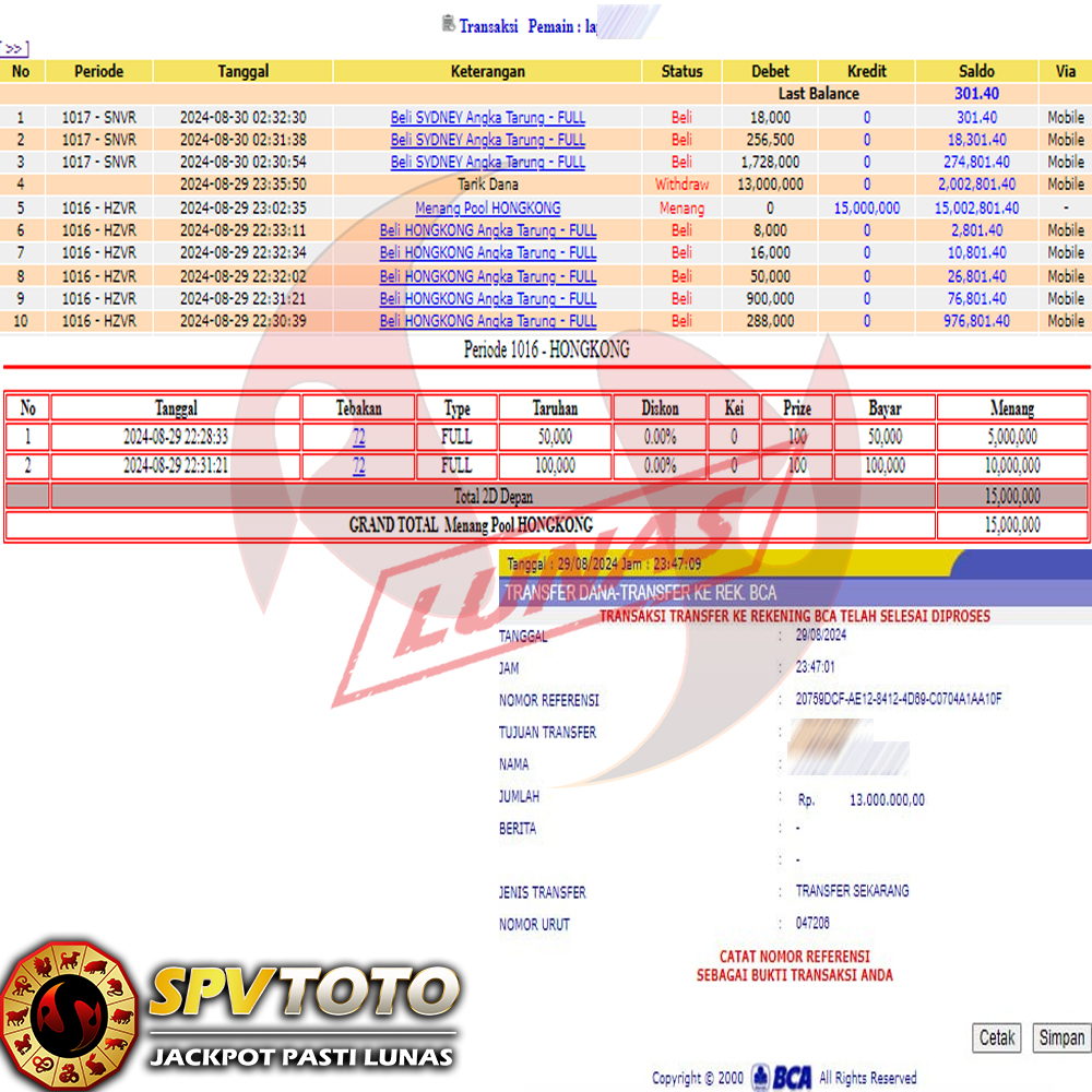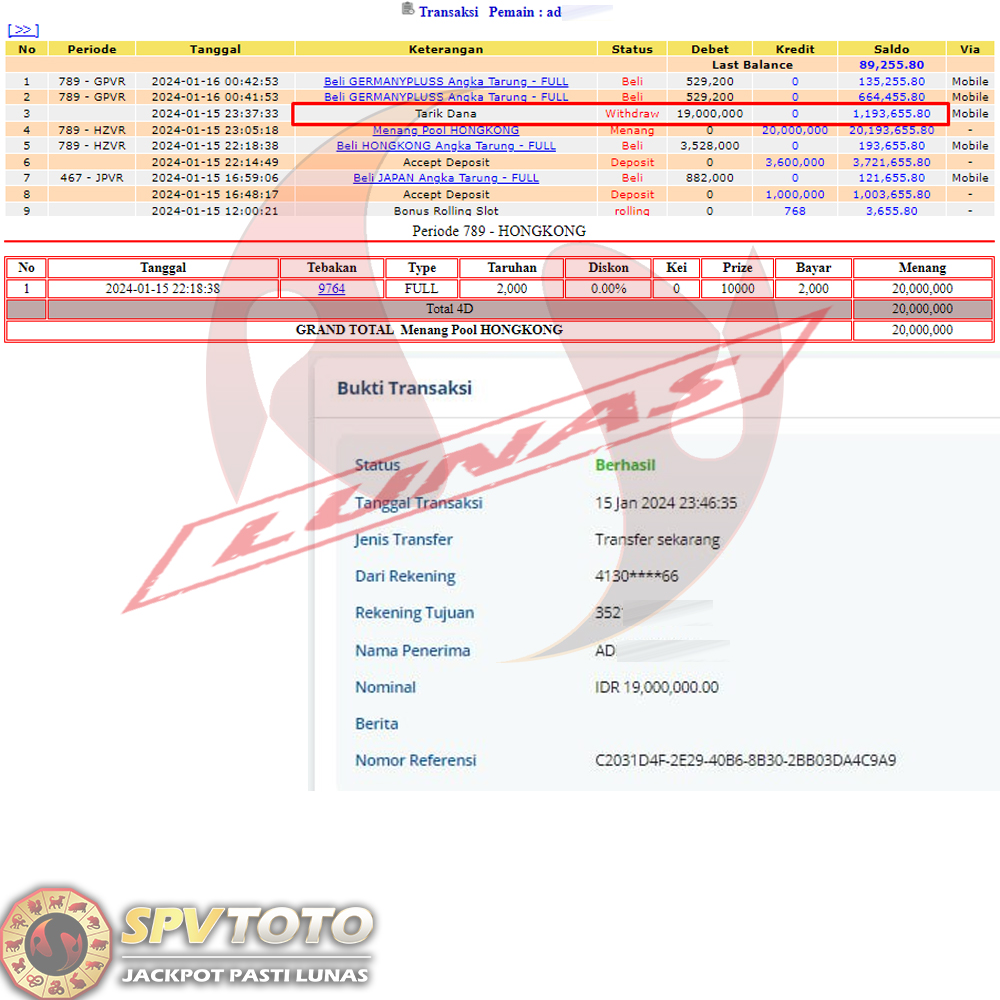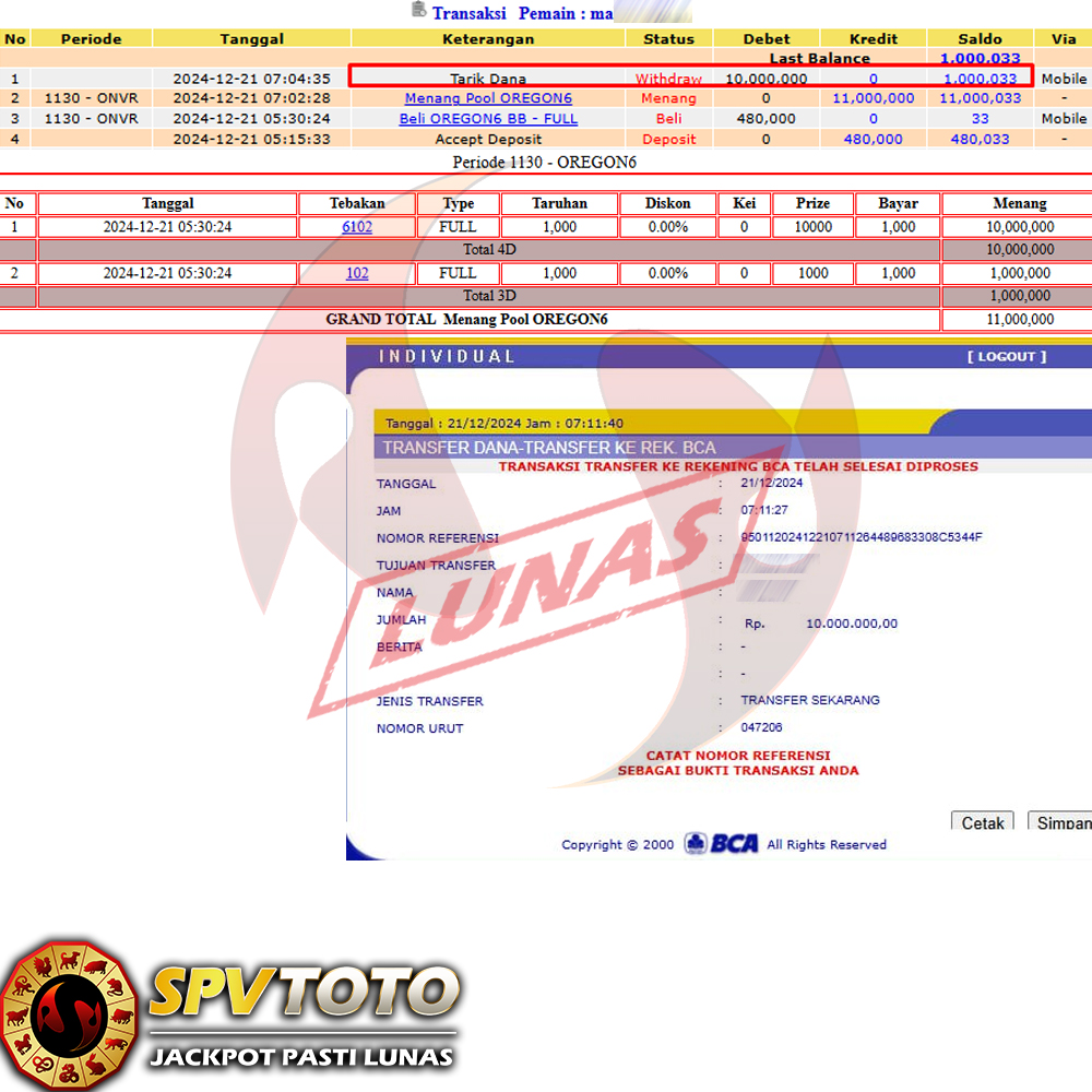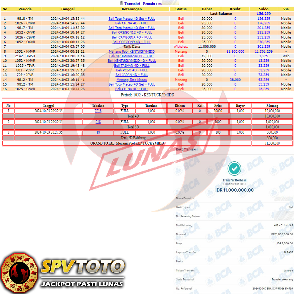 SELAMAT KEPADA MEMBER YANG MENDAPATKAN JACKPOT DI SPVTOTO