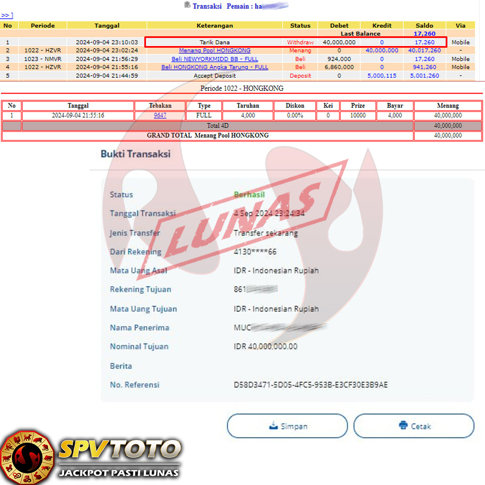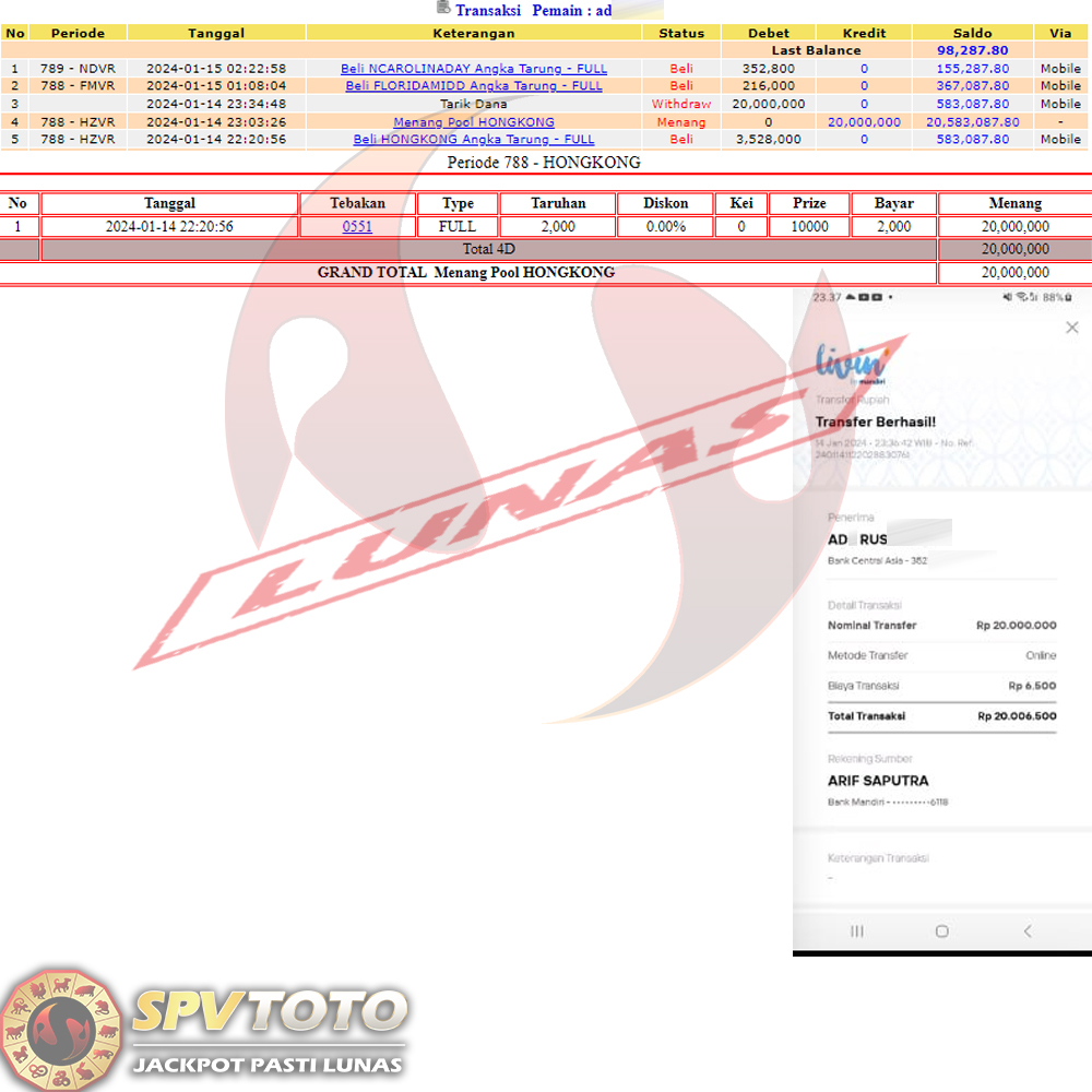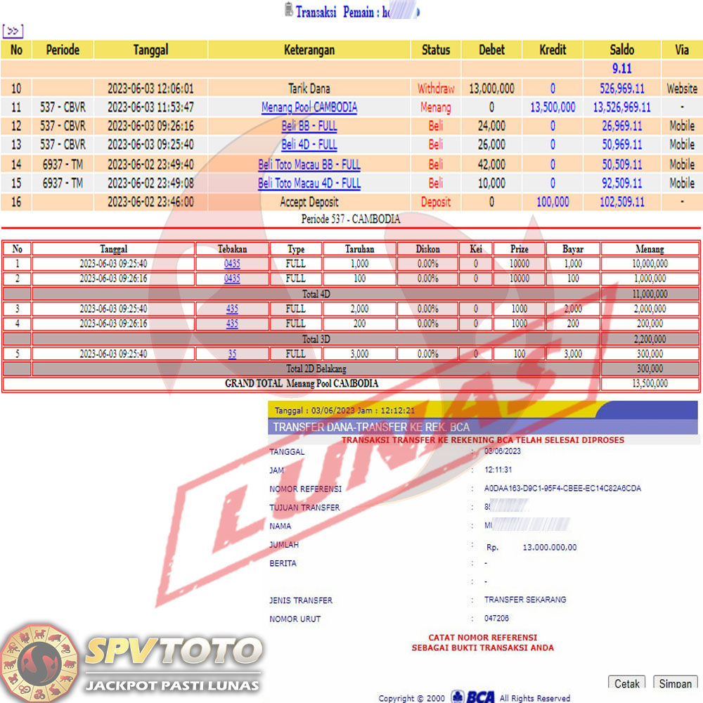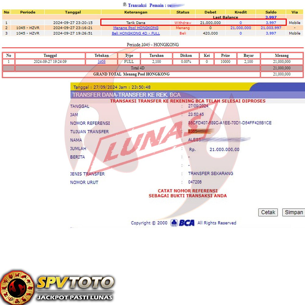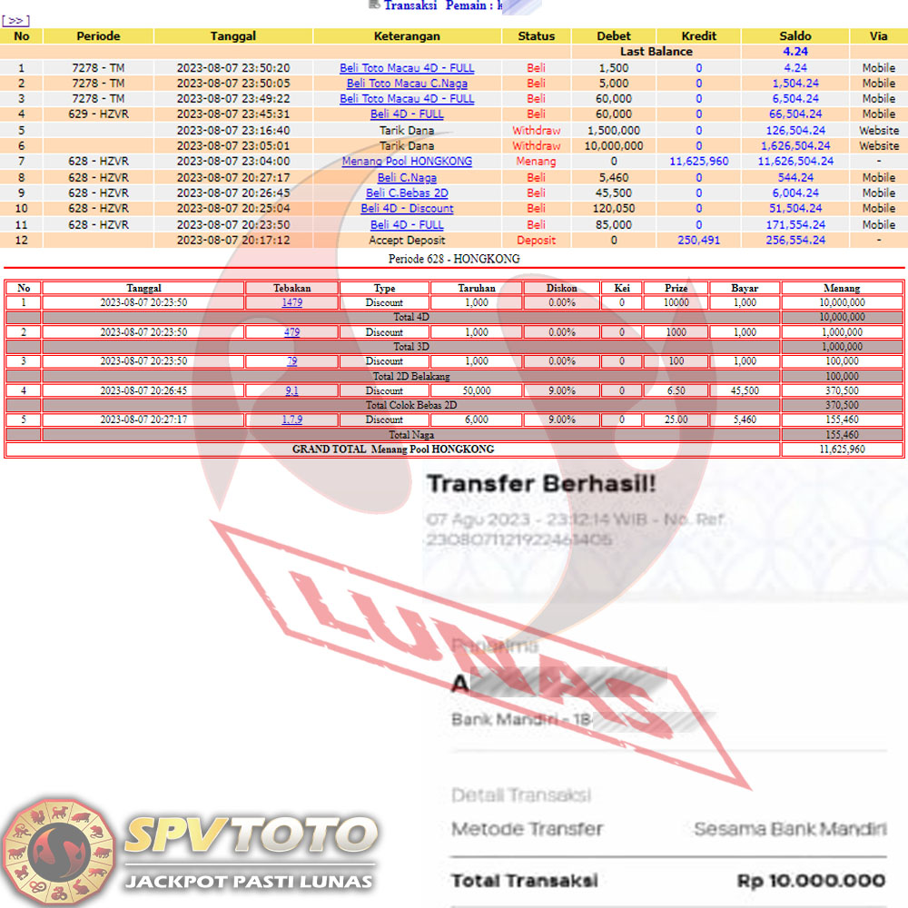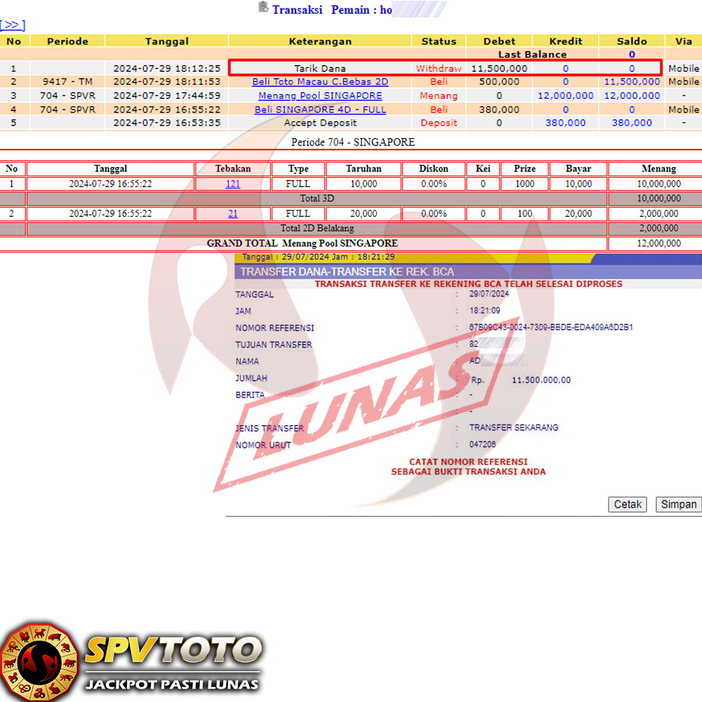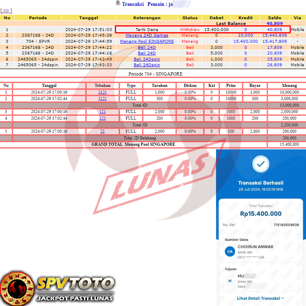 SELAMAT KEPADA MEMBER YANG MENDAPATKAN JACKPOT DI SPVTOTO