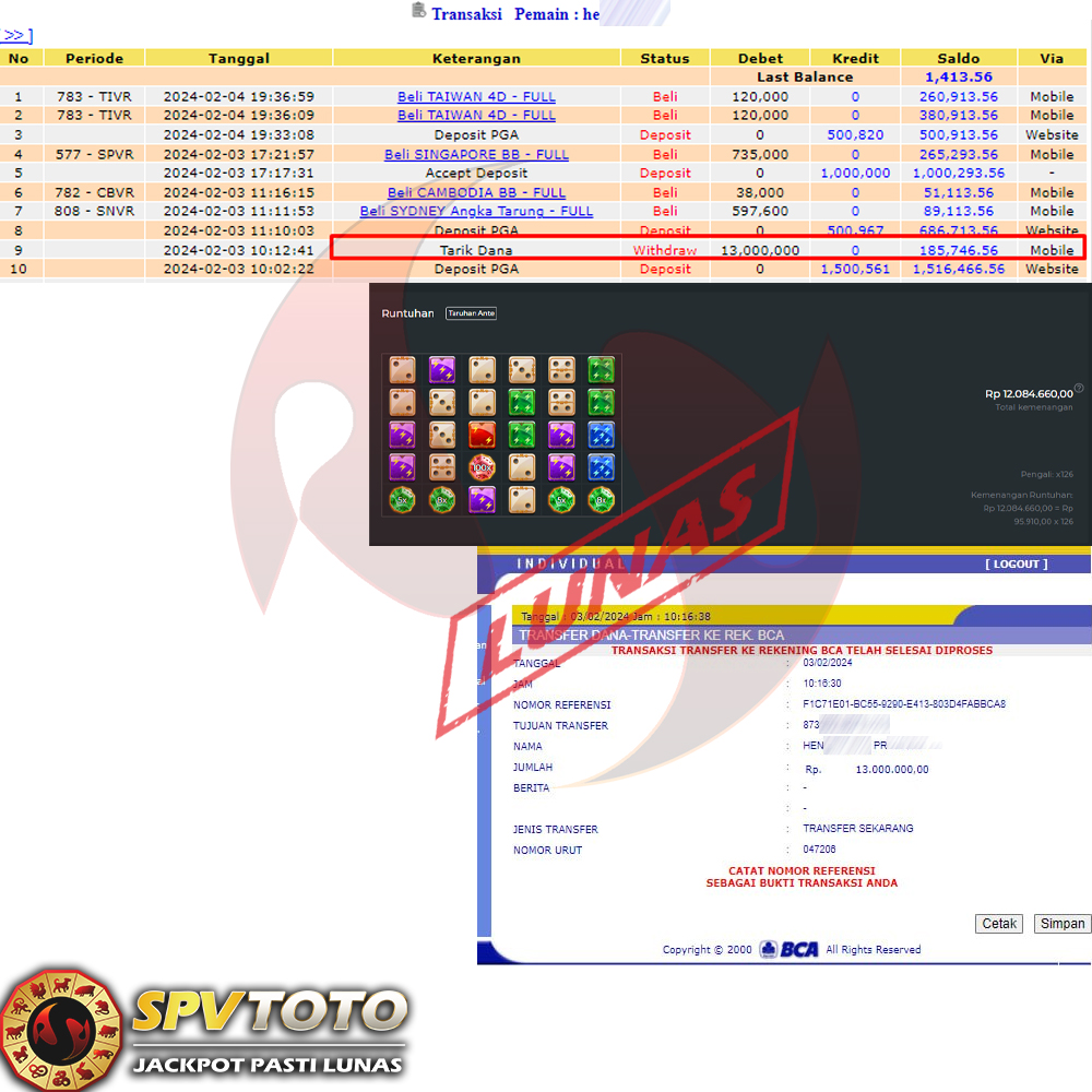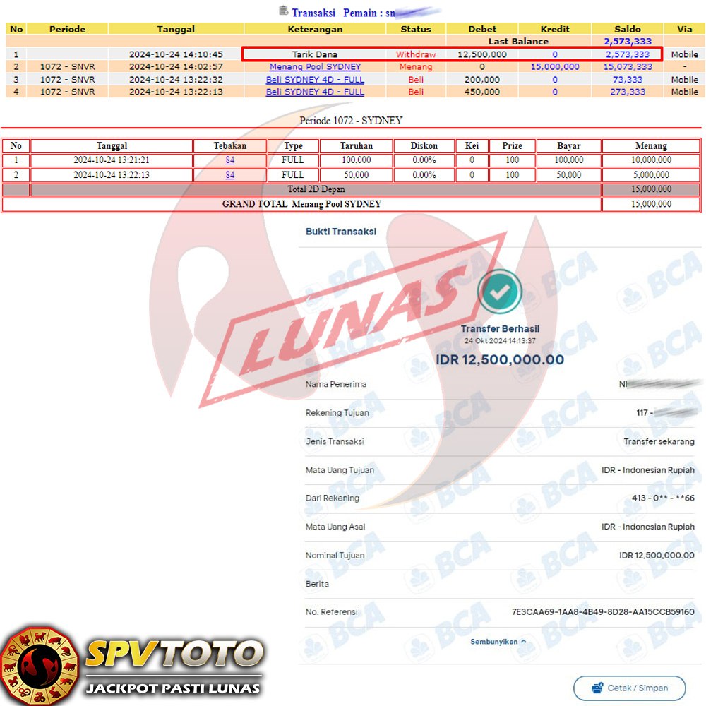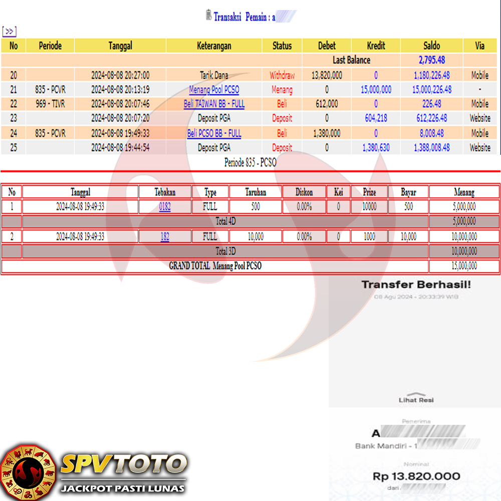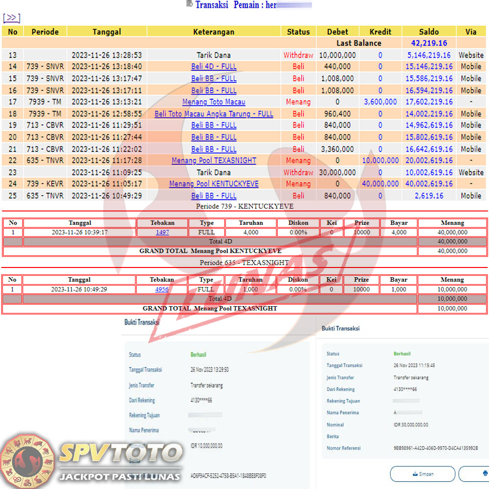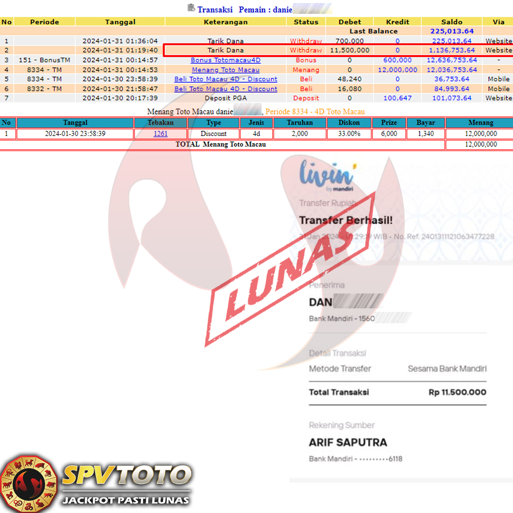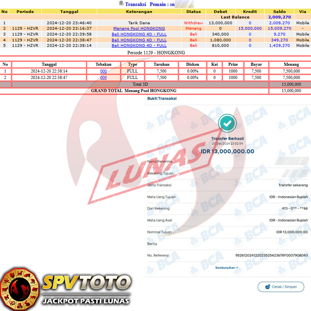 SELAMAT KEPADA MEMBER YANG MENDAPATKAN JACKPOT DI SPVTOTO