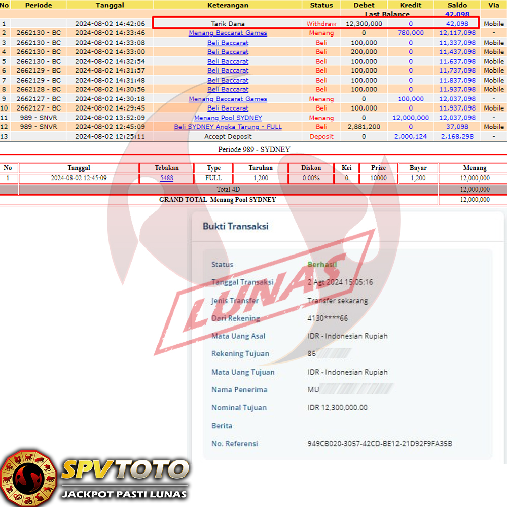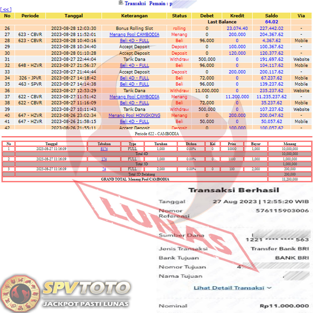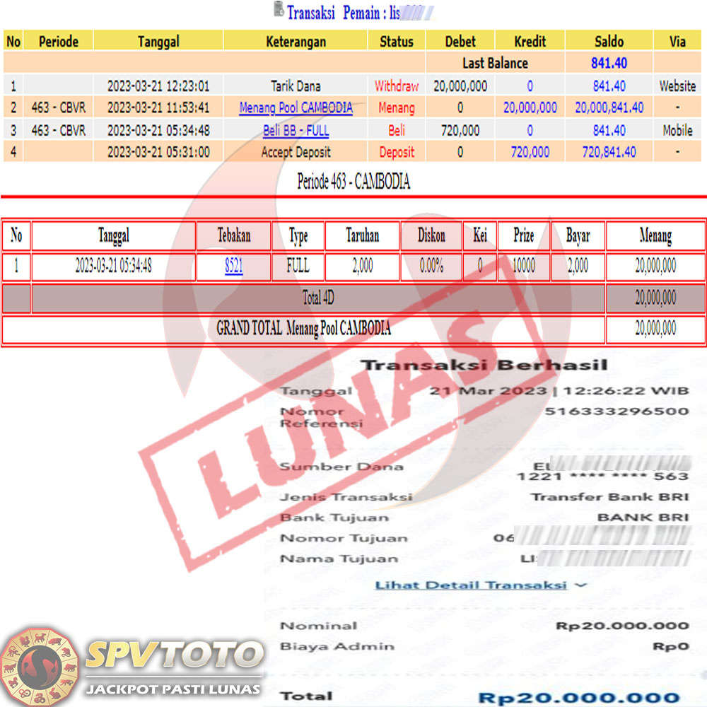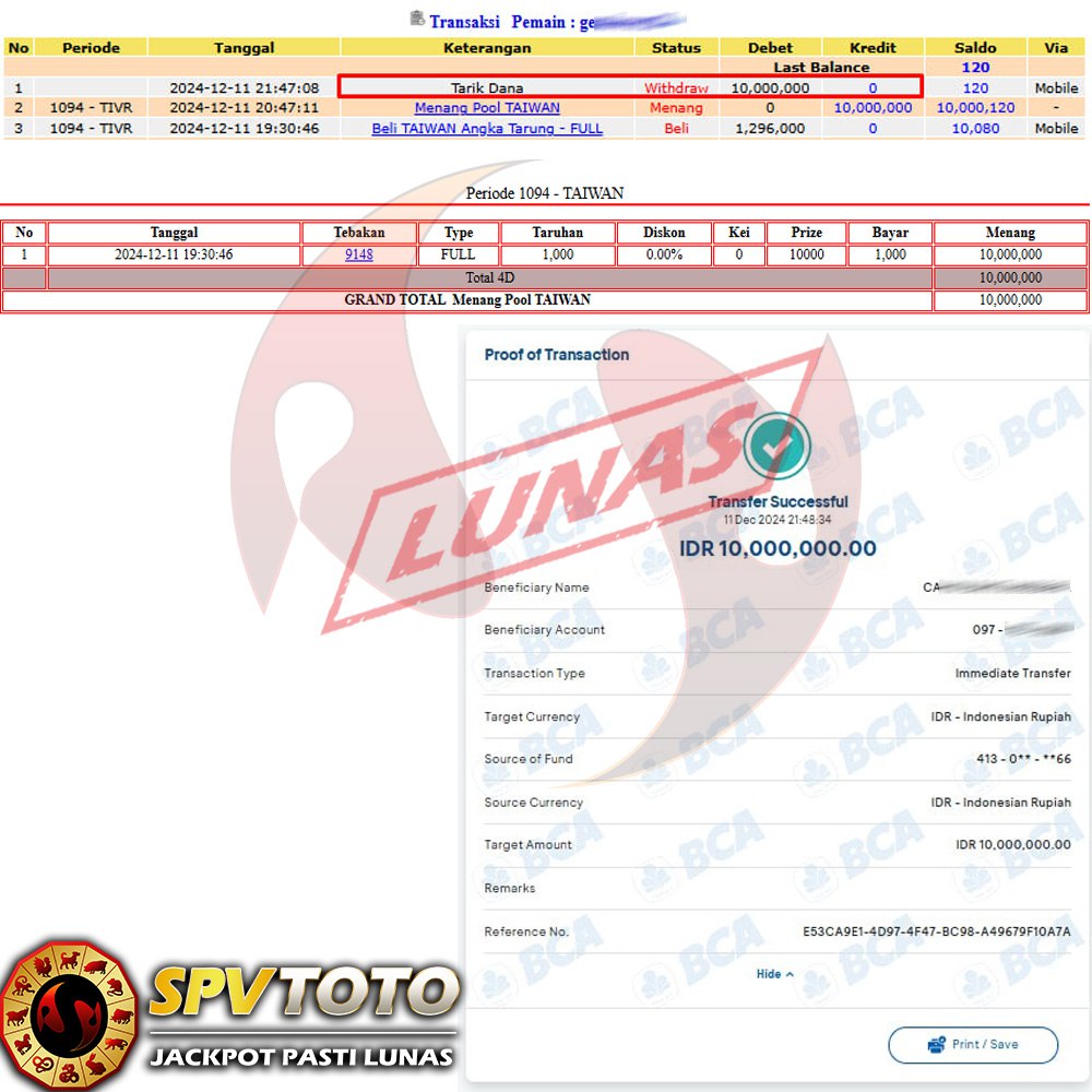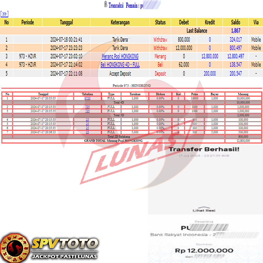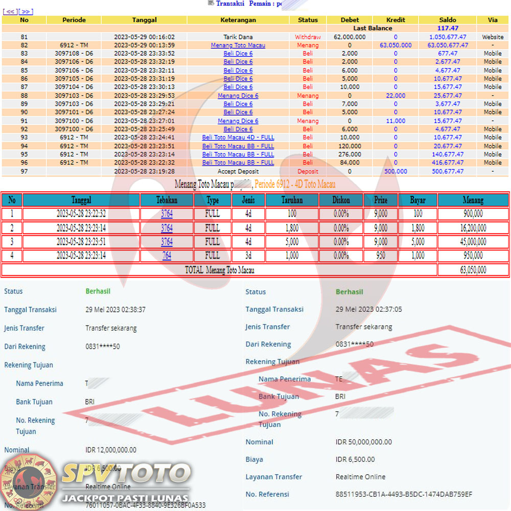 SELAMAT KEPADA MEMBER YANG MENDAPATKAN JACKPOT DI SPVTOTO