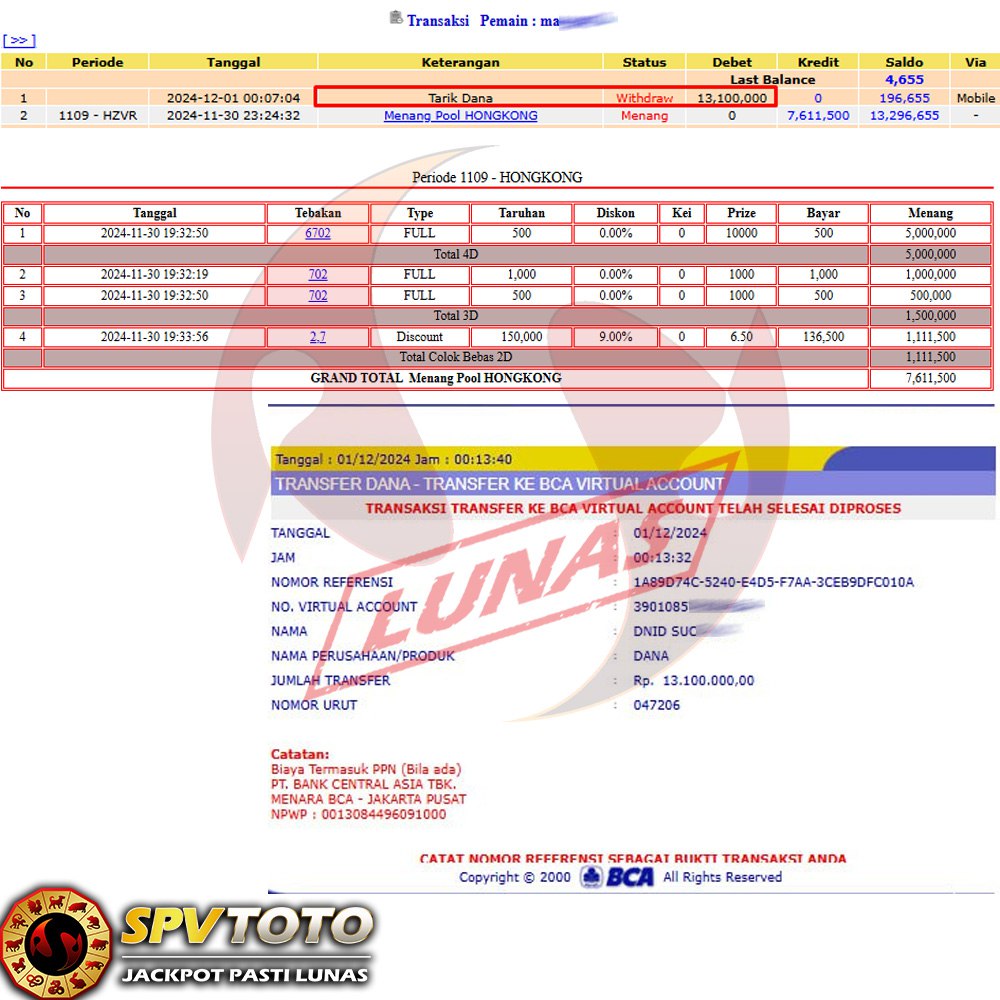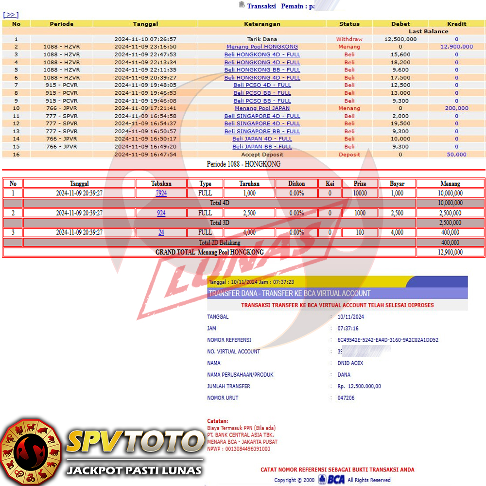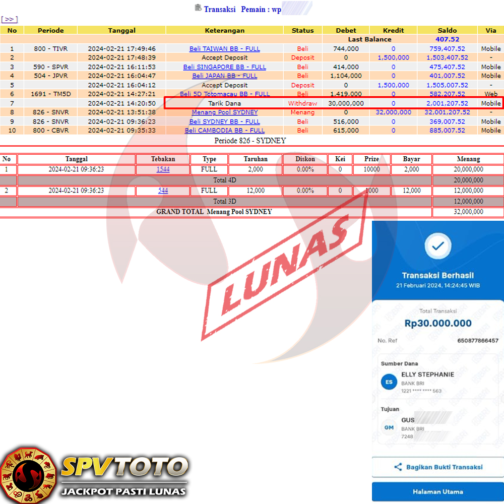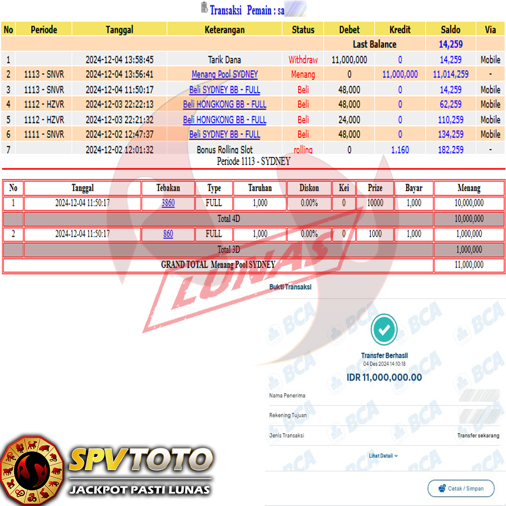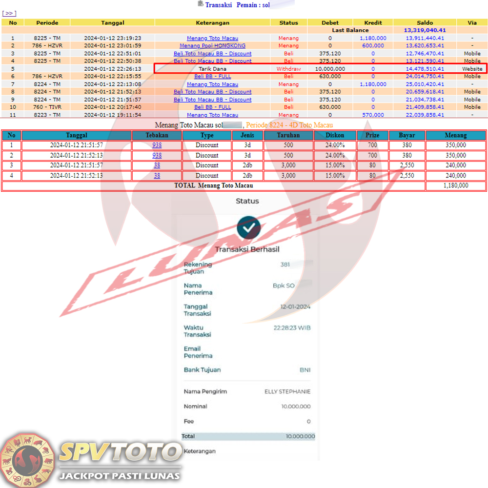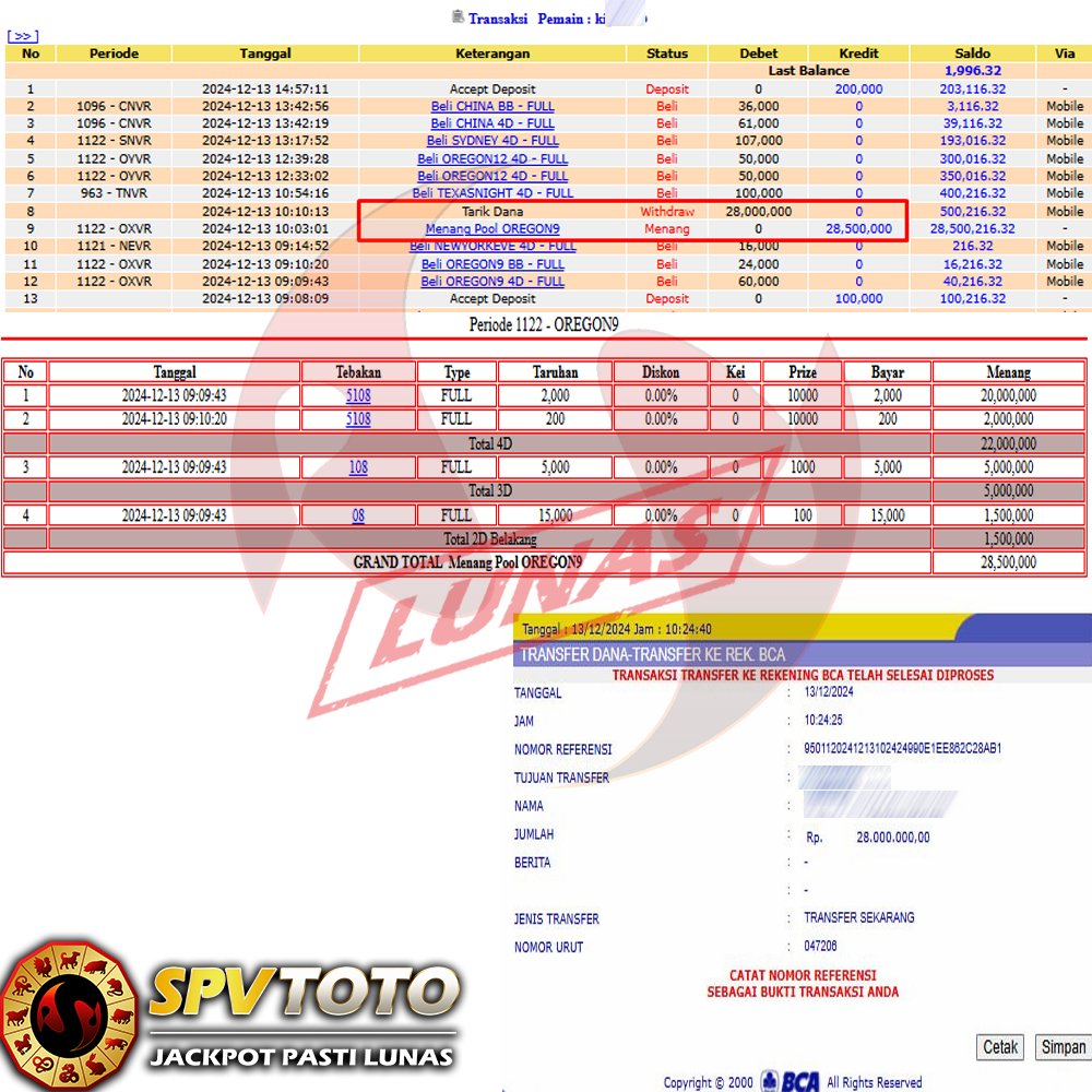 SELAMAT KEPADA MEMBER YANG MENDAPATKAN JACKPOT DI SPVTOTO