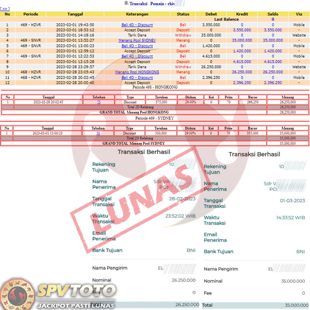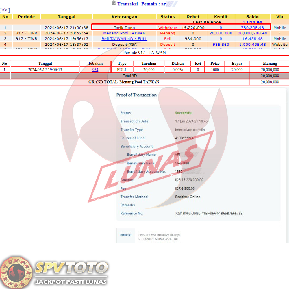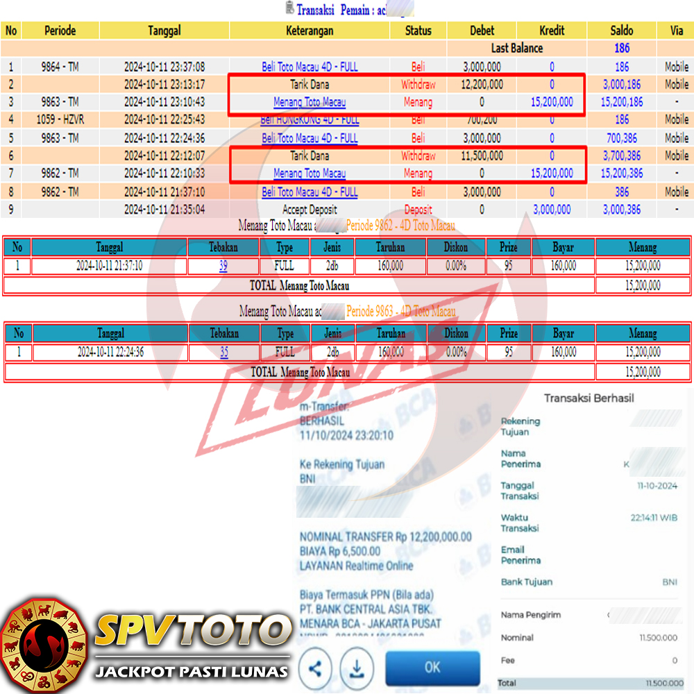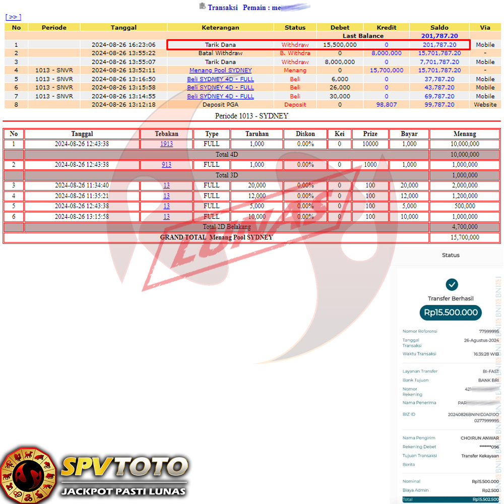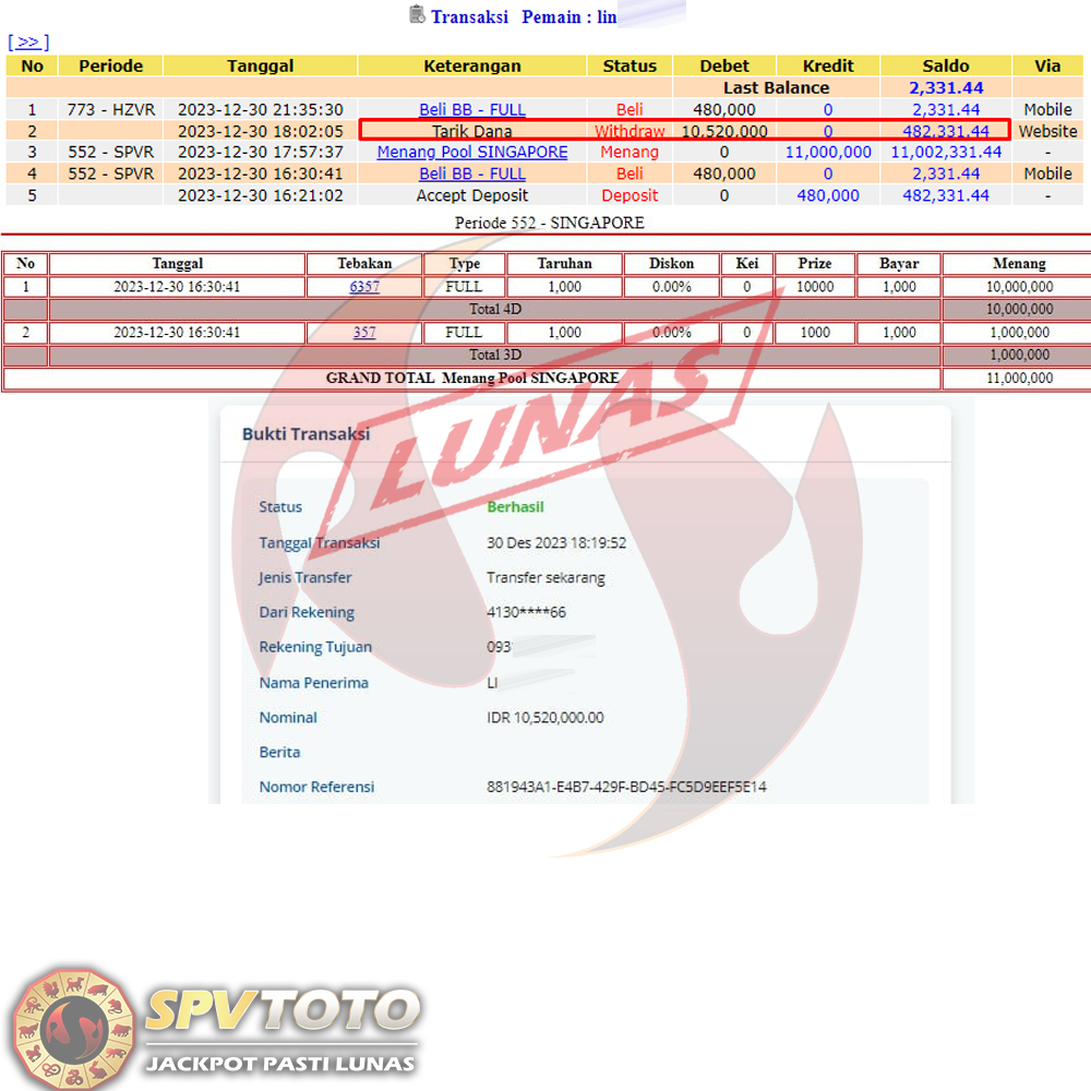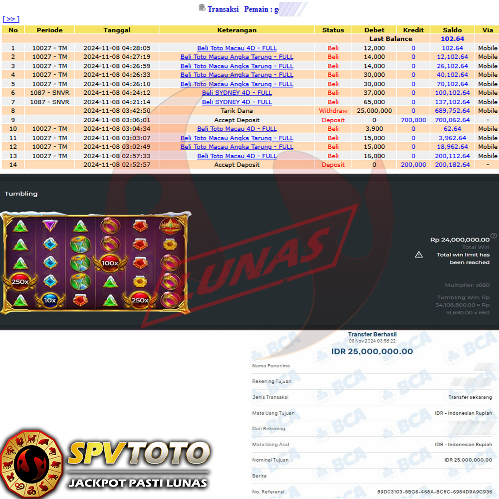 SELAMAT KEPADA MEMBER YANG MENDAPATKAN JACKPOT DI SPVTOTO