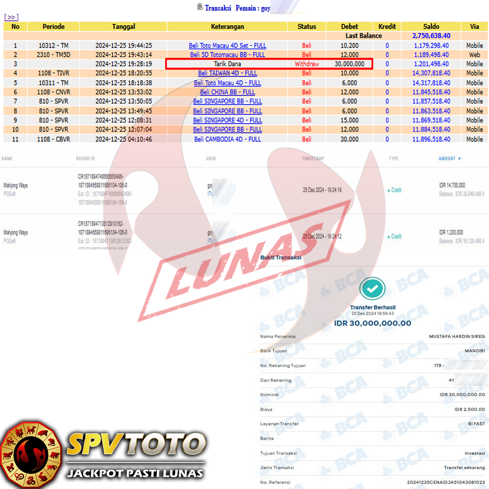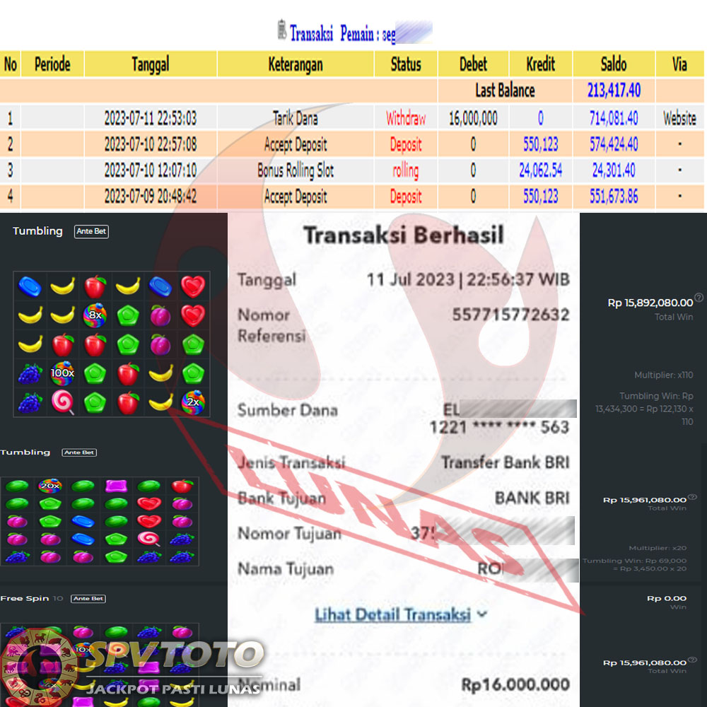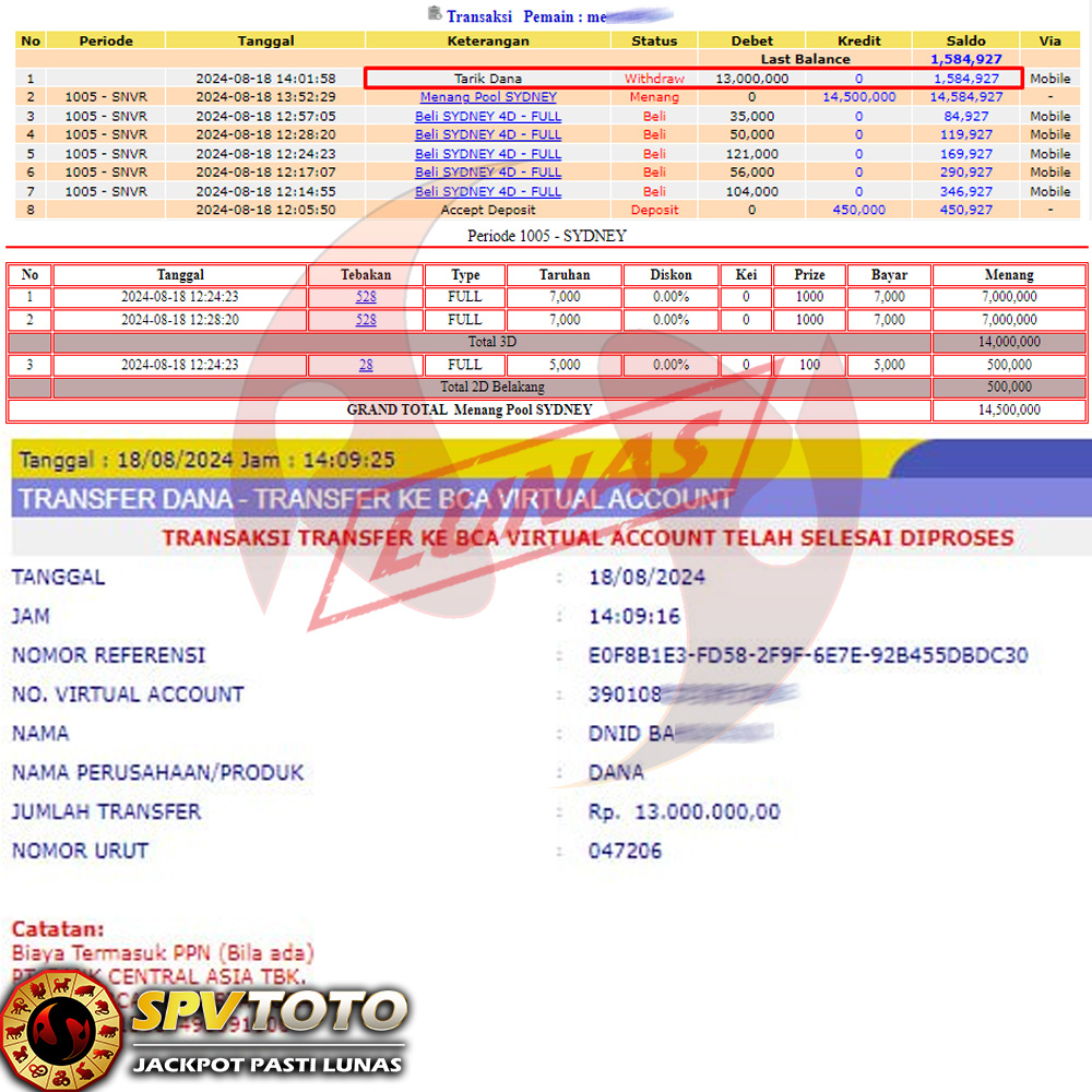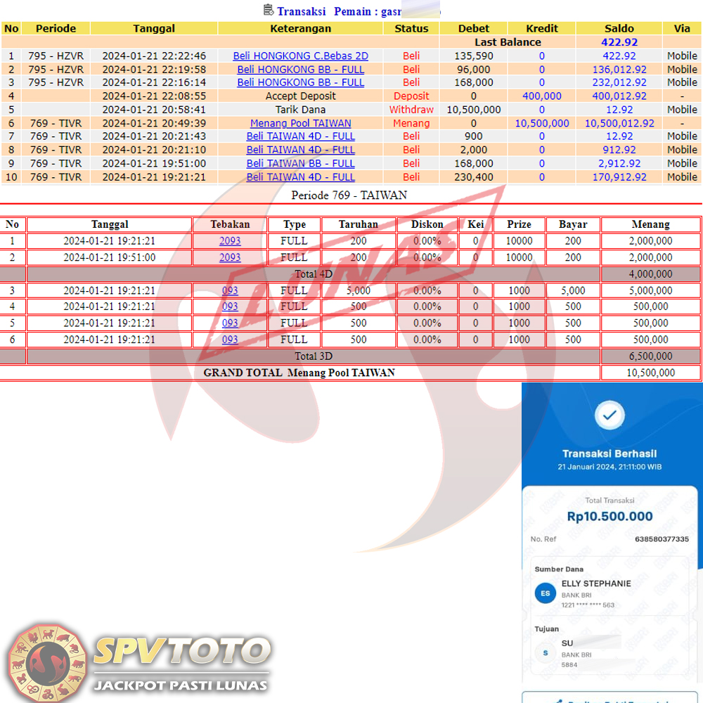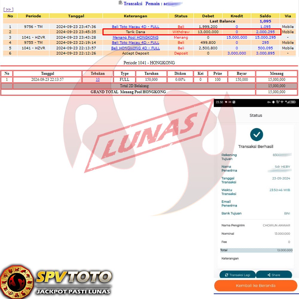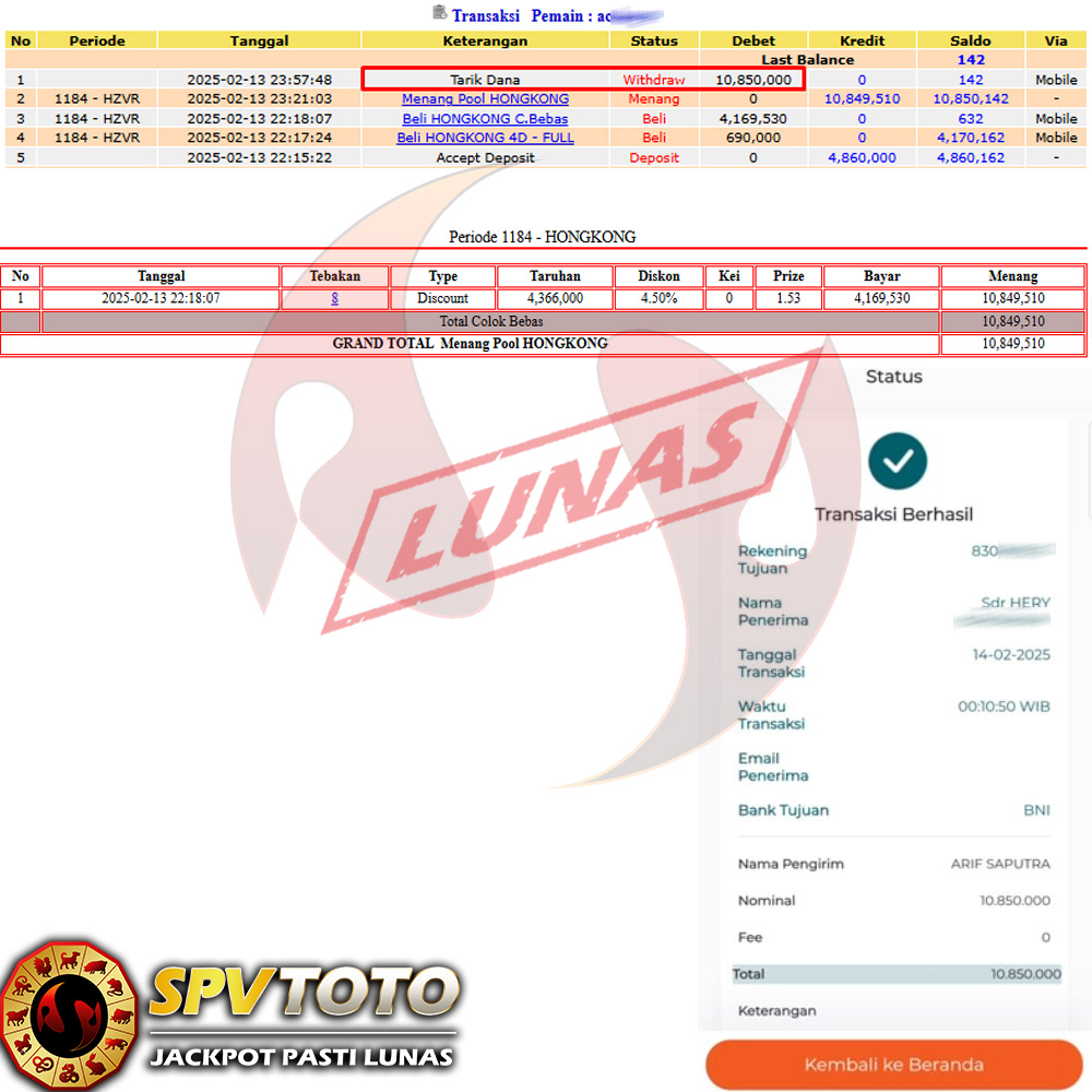 SELAMAT KEPADA MEMBER YANG MENDAPATKAN JACKPOT DI SPVTOTO
