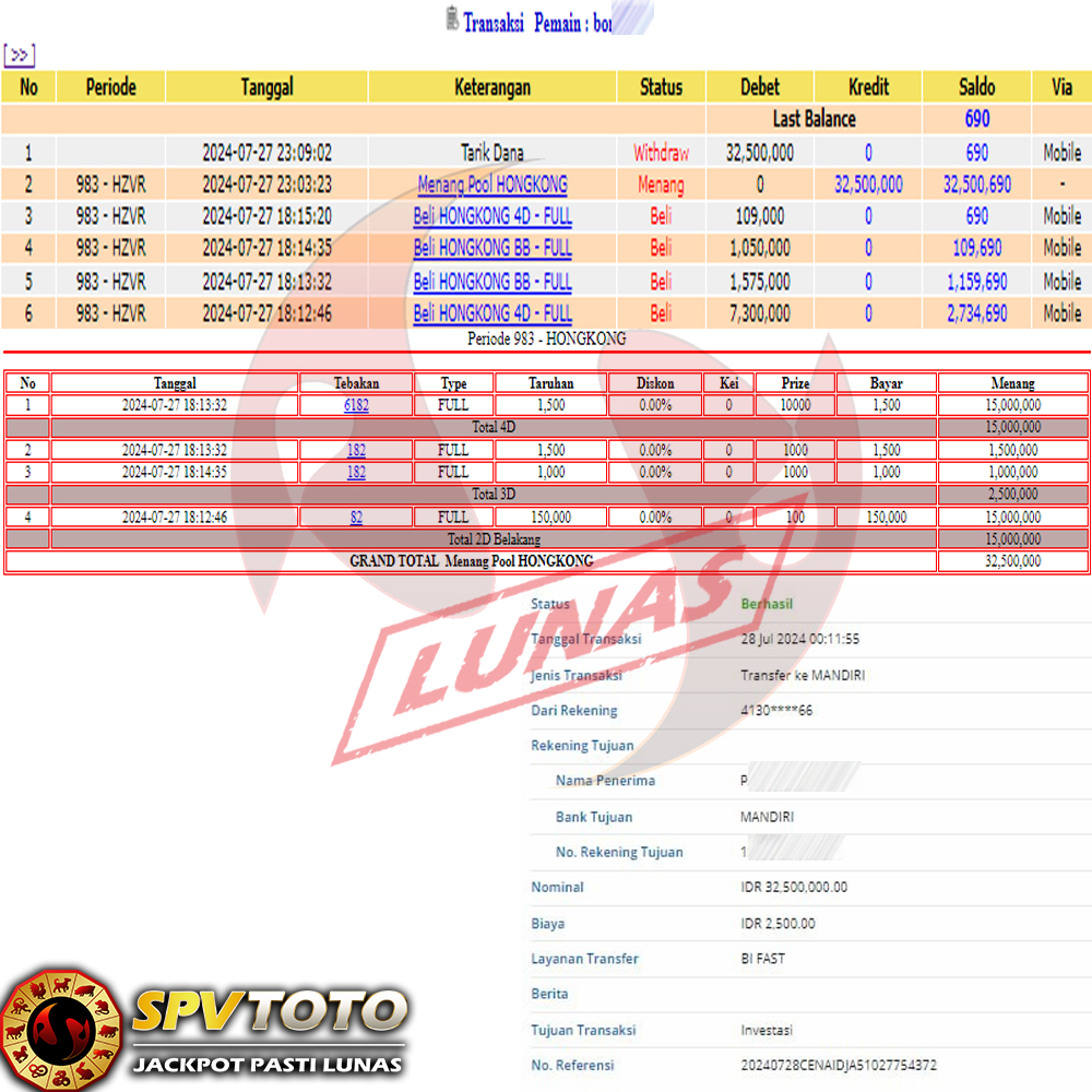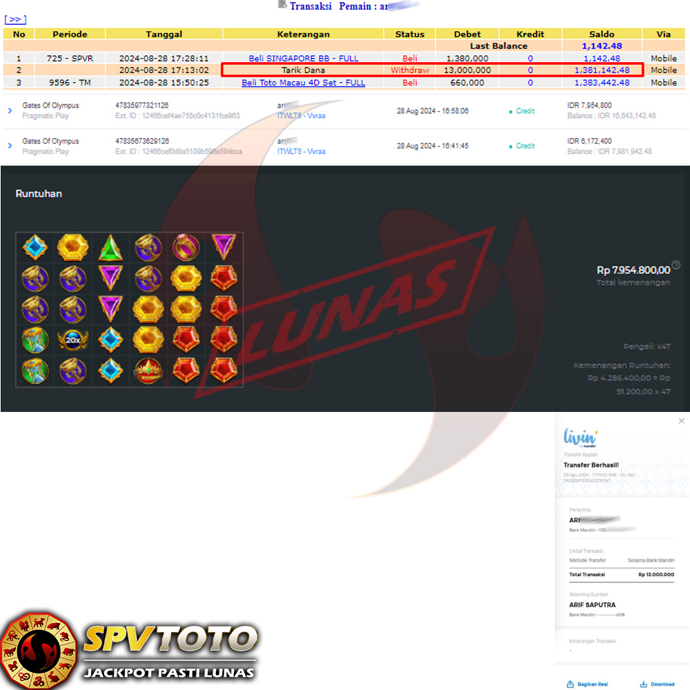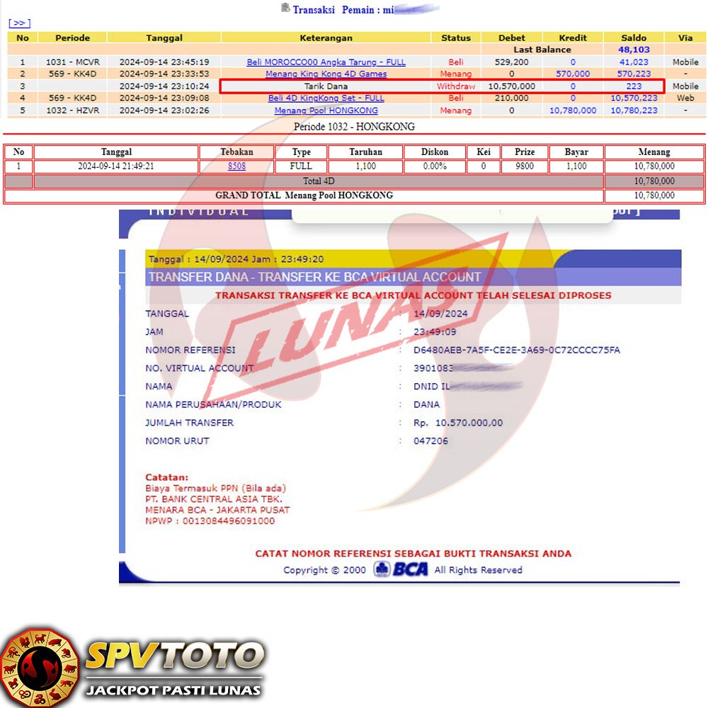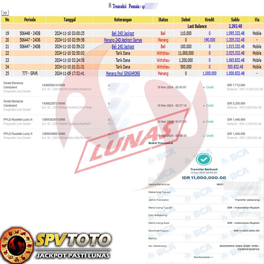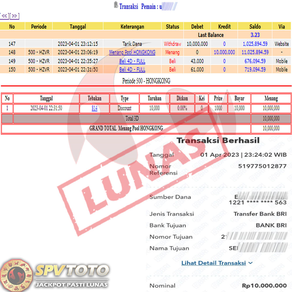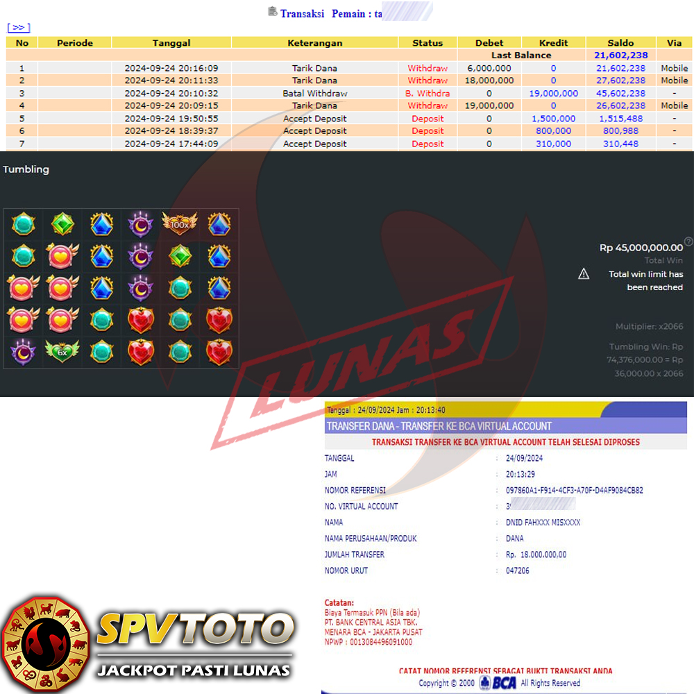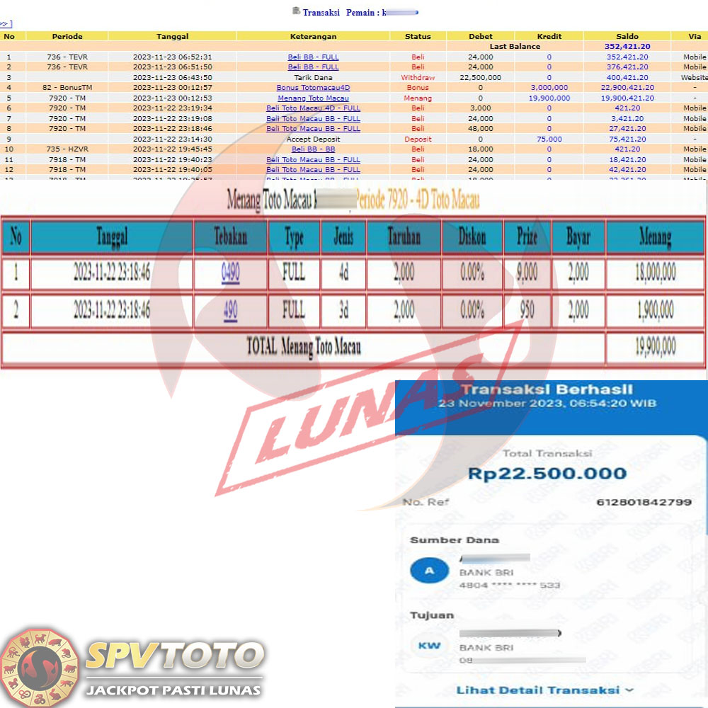 SELAMAT KEPADA MEMBER YANG MENDAPATKAN JACKPOT DI SPVTOTO