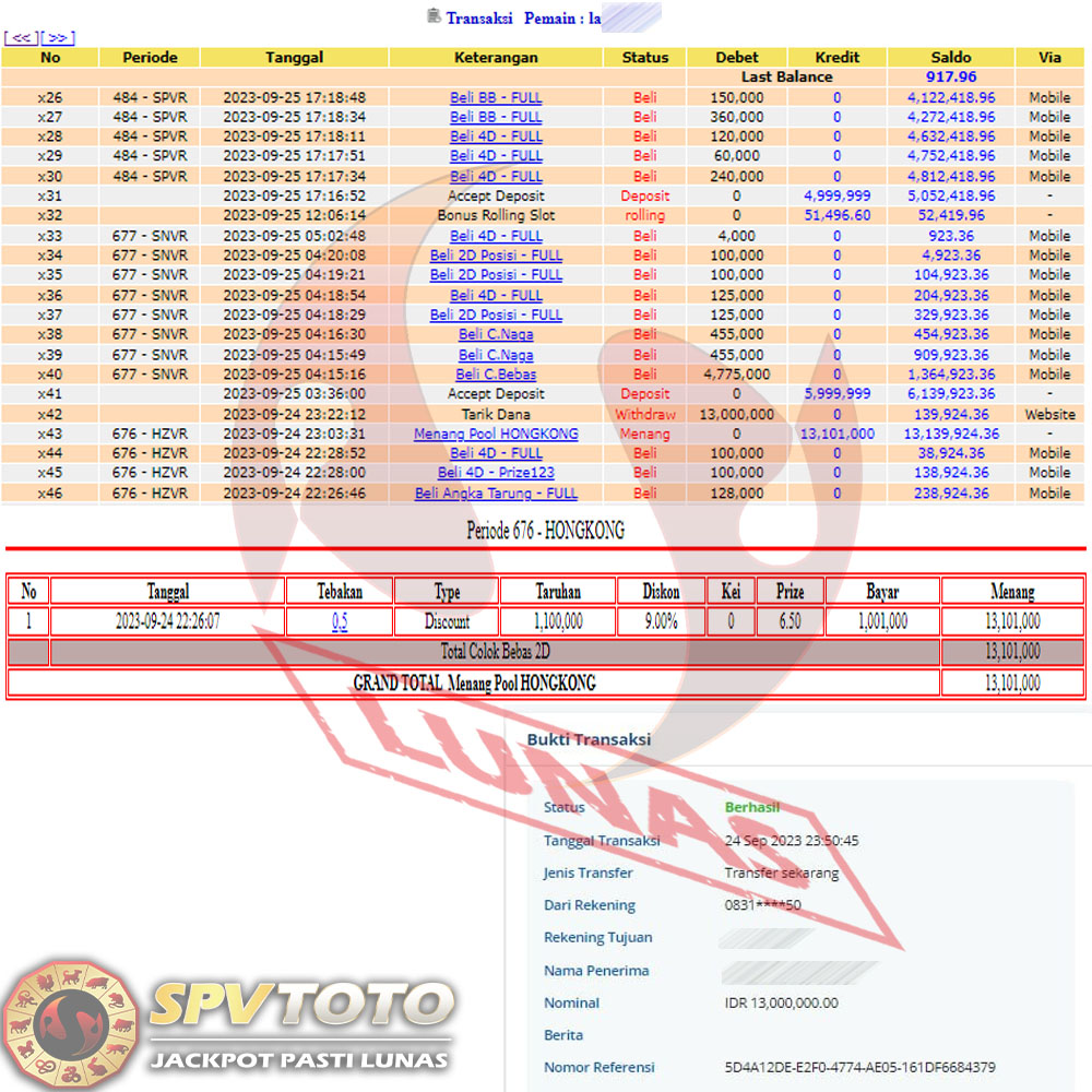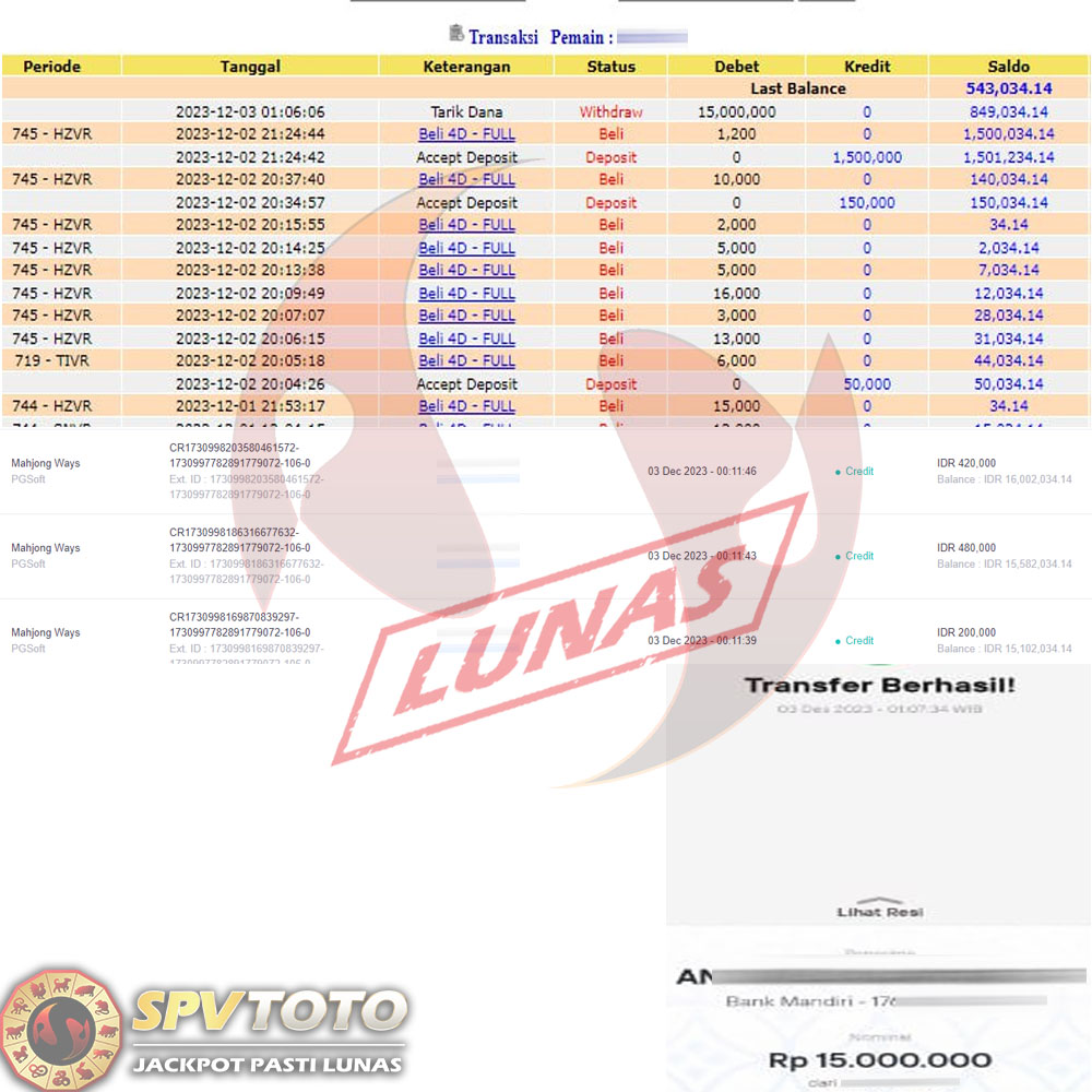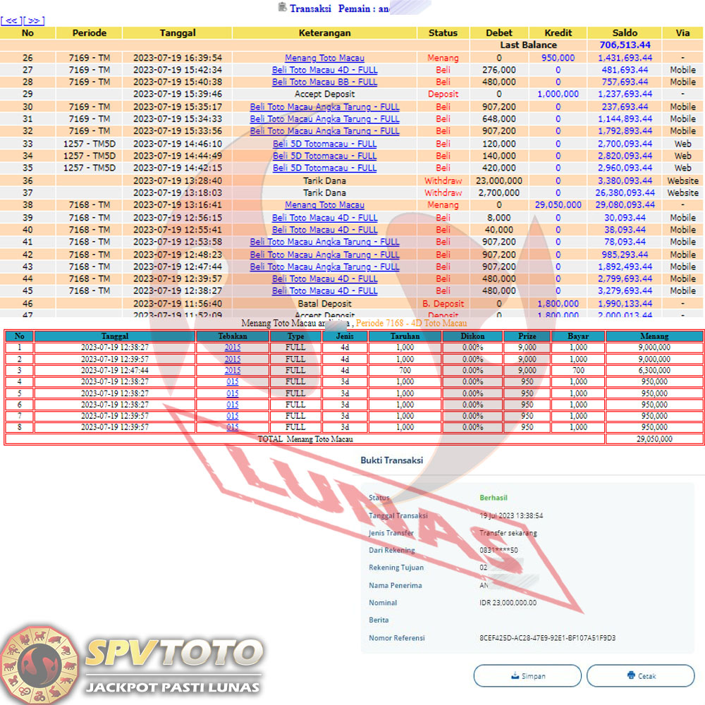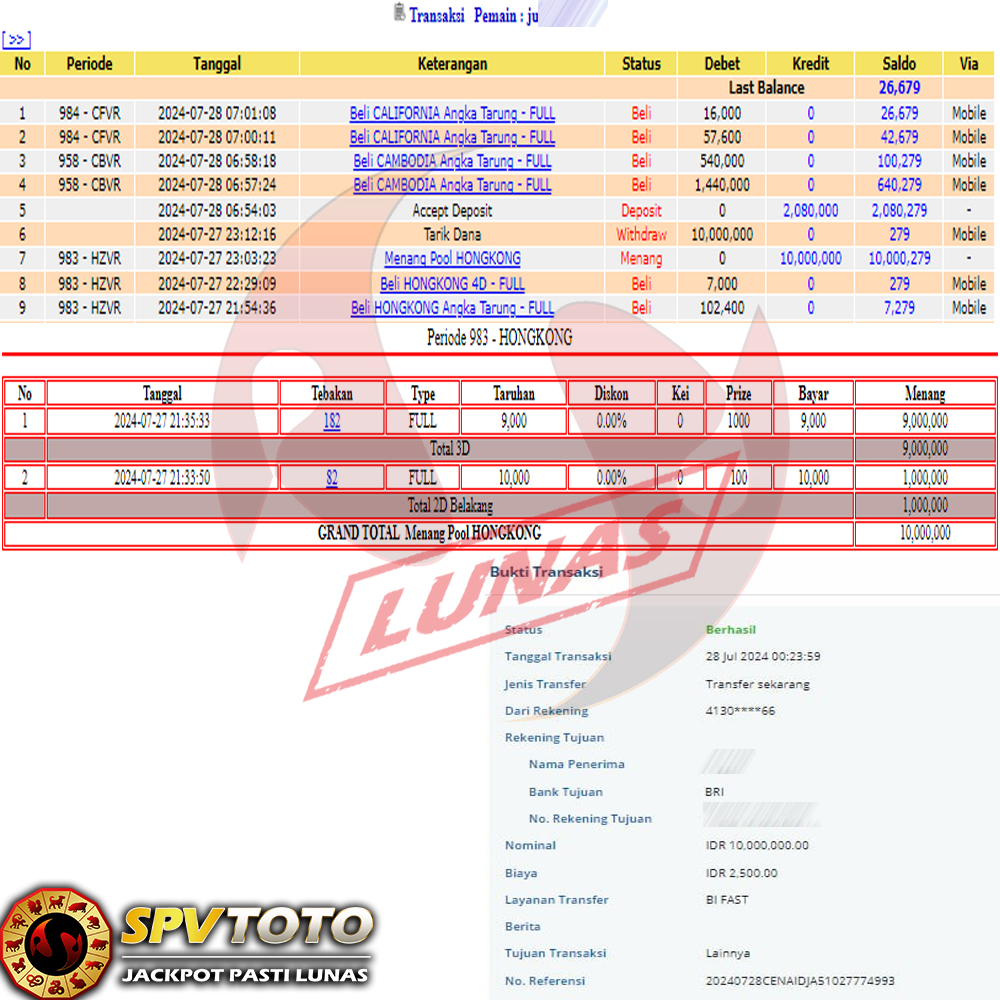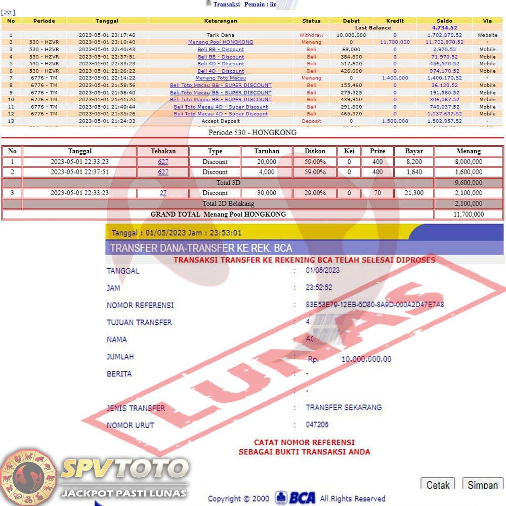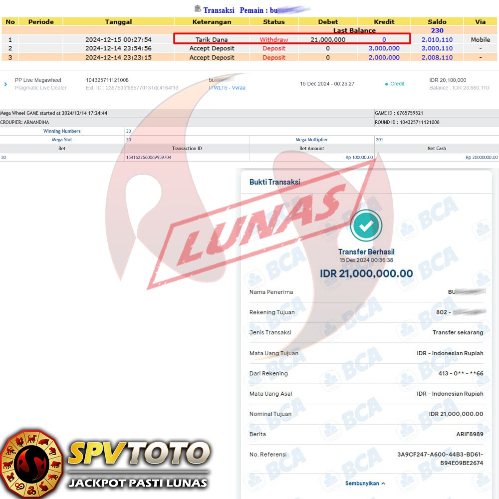 SELAMAT KEPADA MEMBER YANG MENDAPATKAN JACKPOT DI SPVTOTO