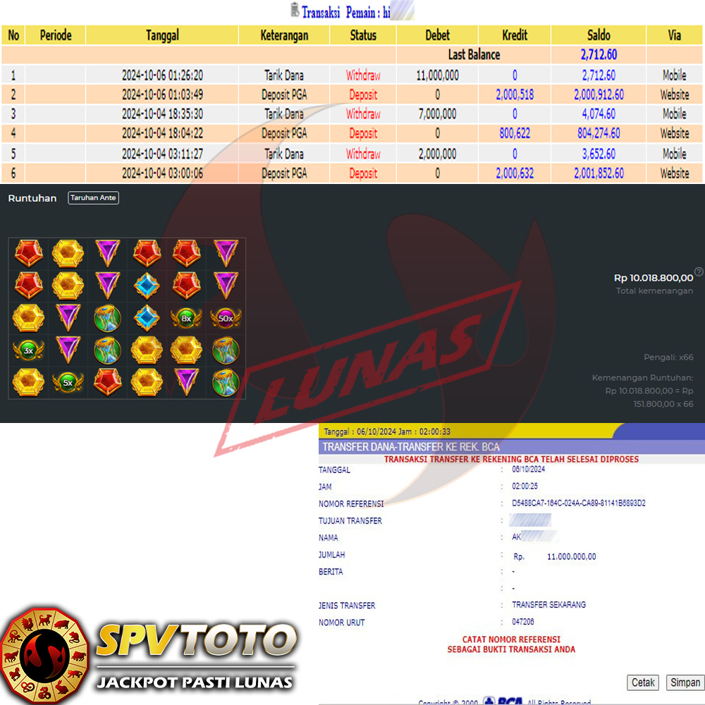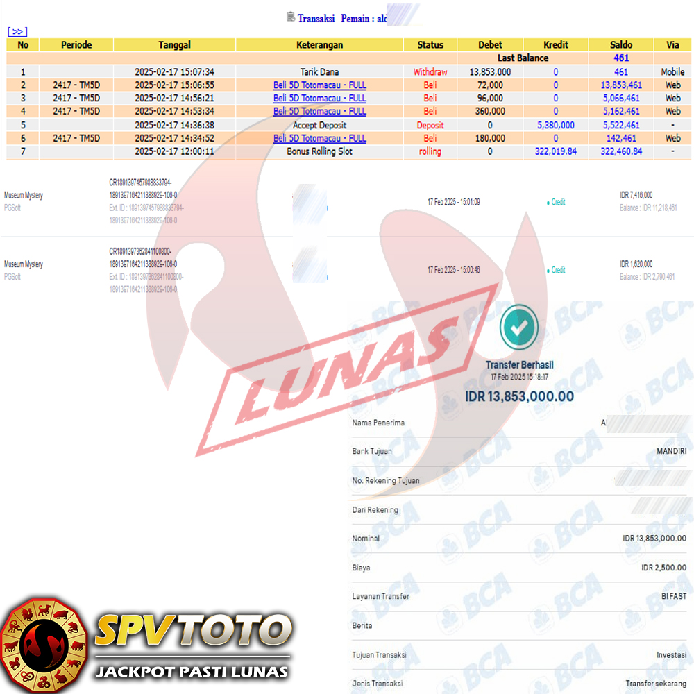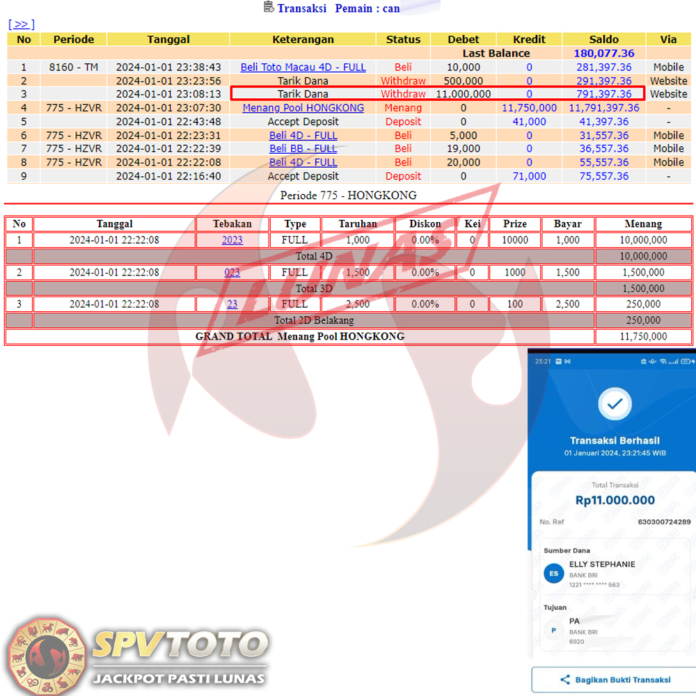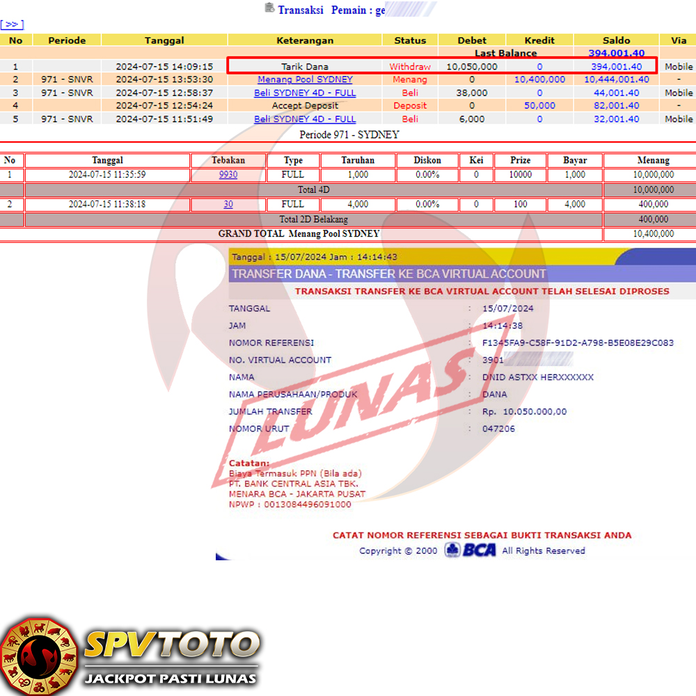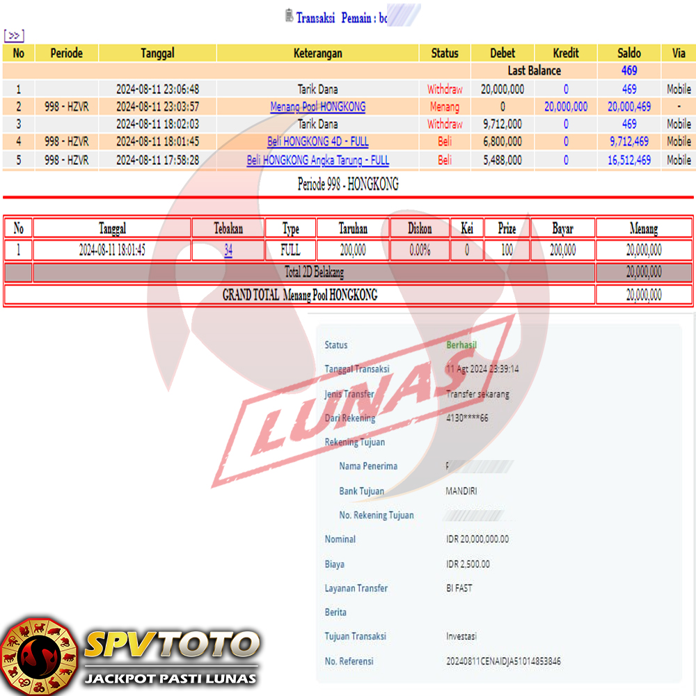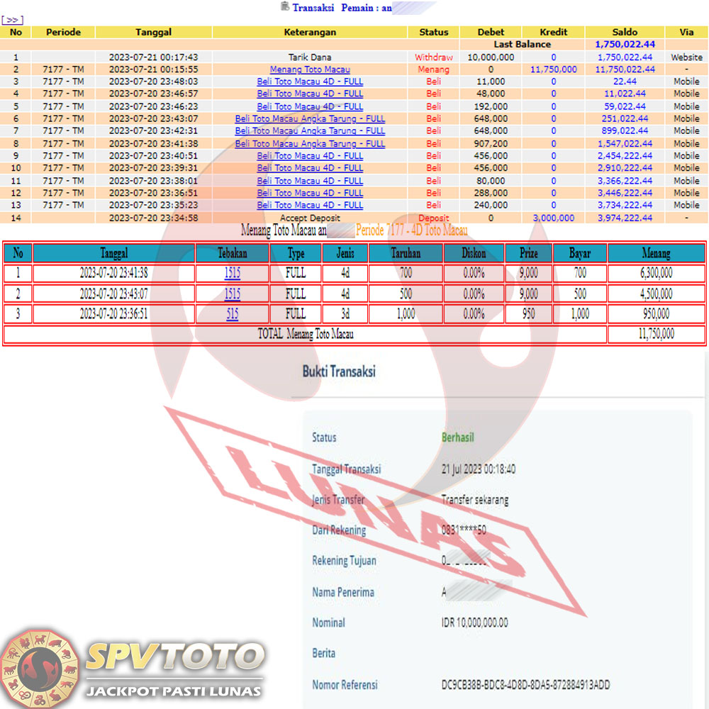 SELAMAT KEPADA MEMBER YANG MENDAPATKAN JACKPOT DI SPVTOTO