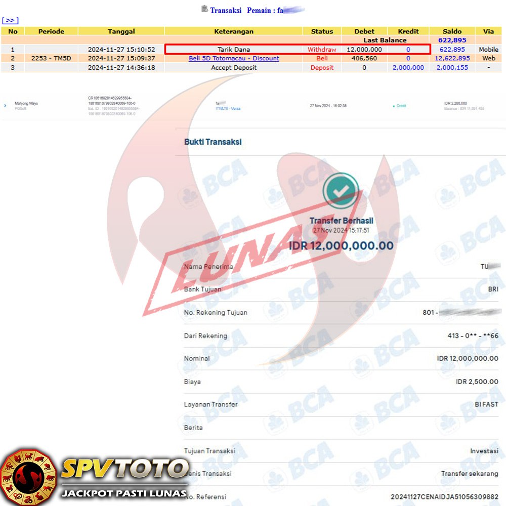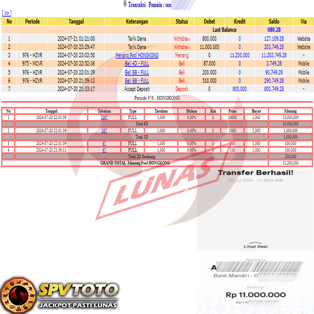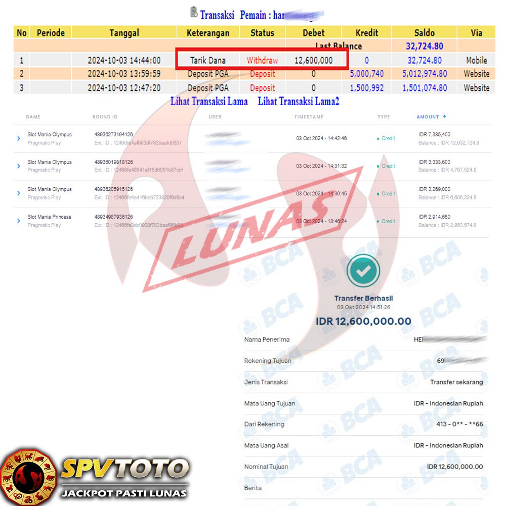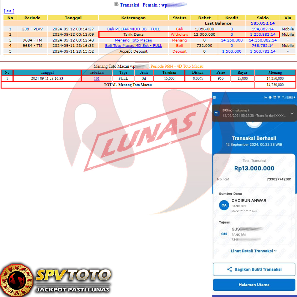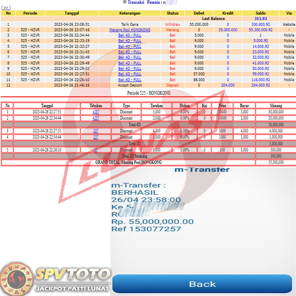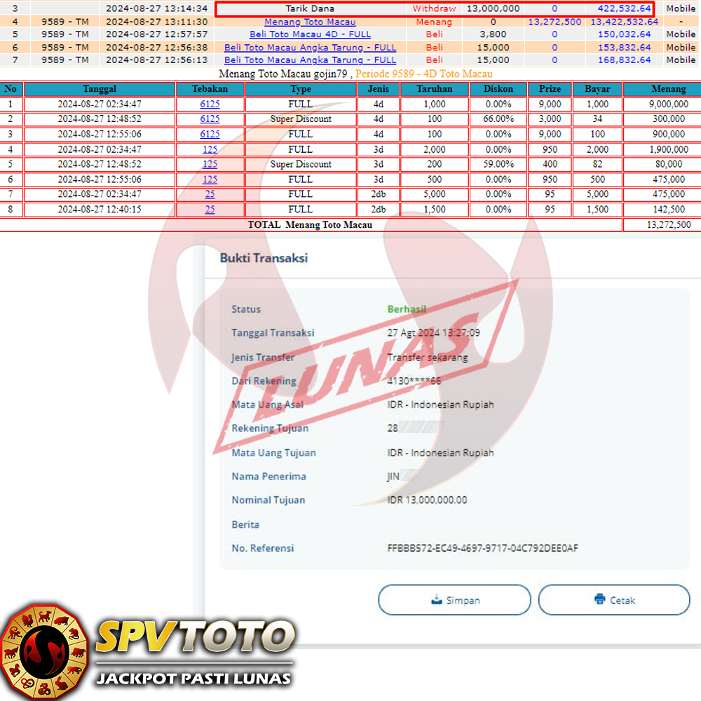 SELAMAT KEPADA MEMBER YANG MENDAPATKAN JACKPOT DI SPVTOTO