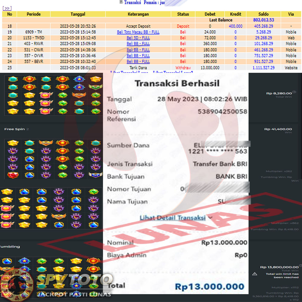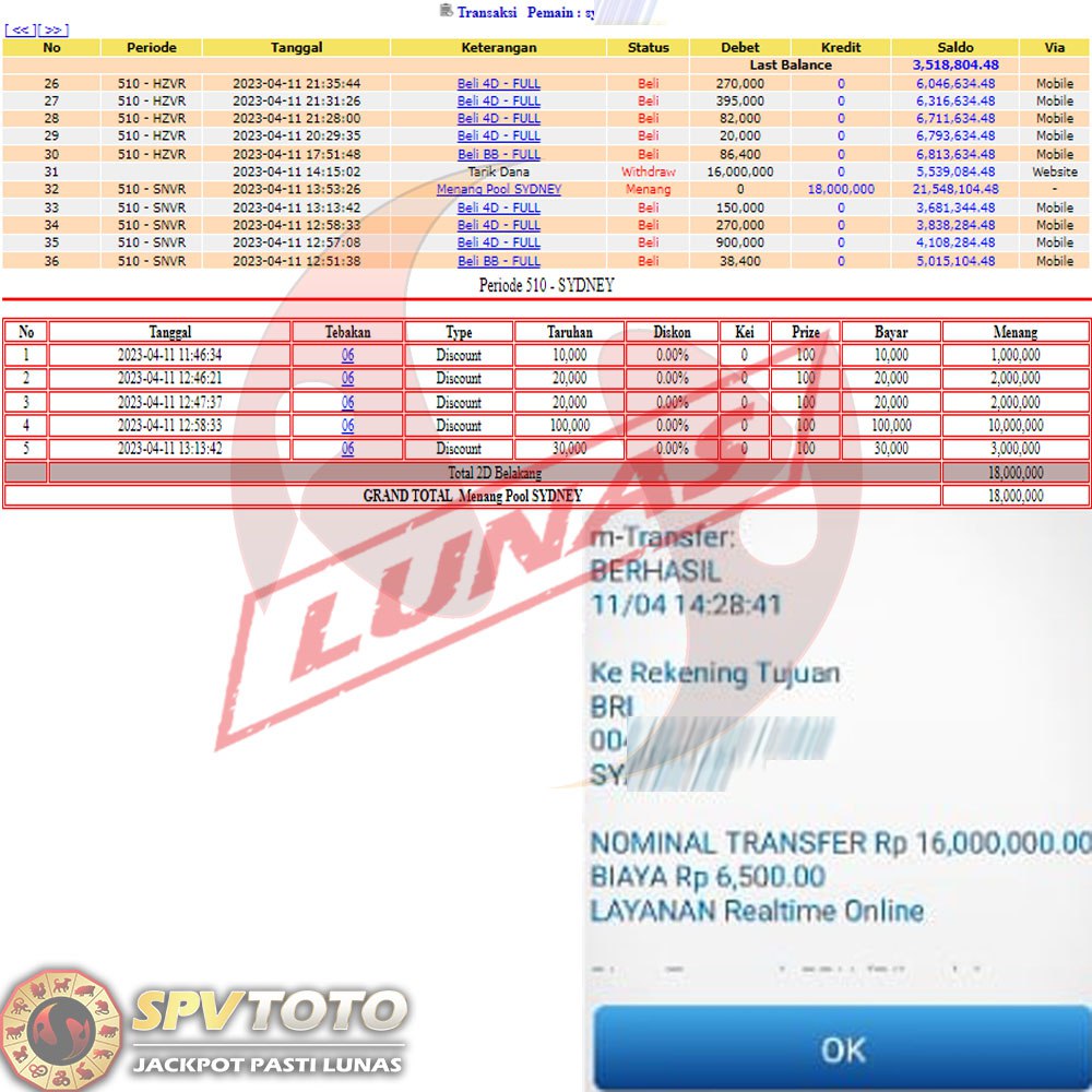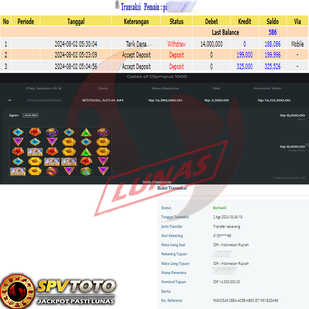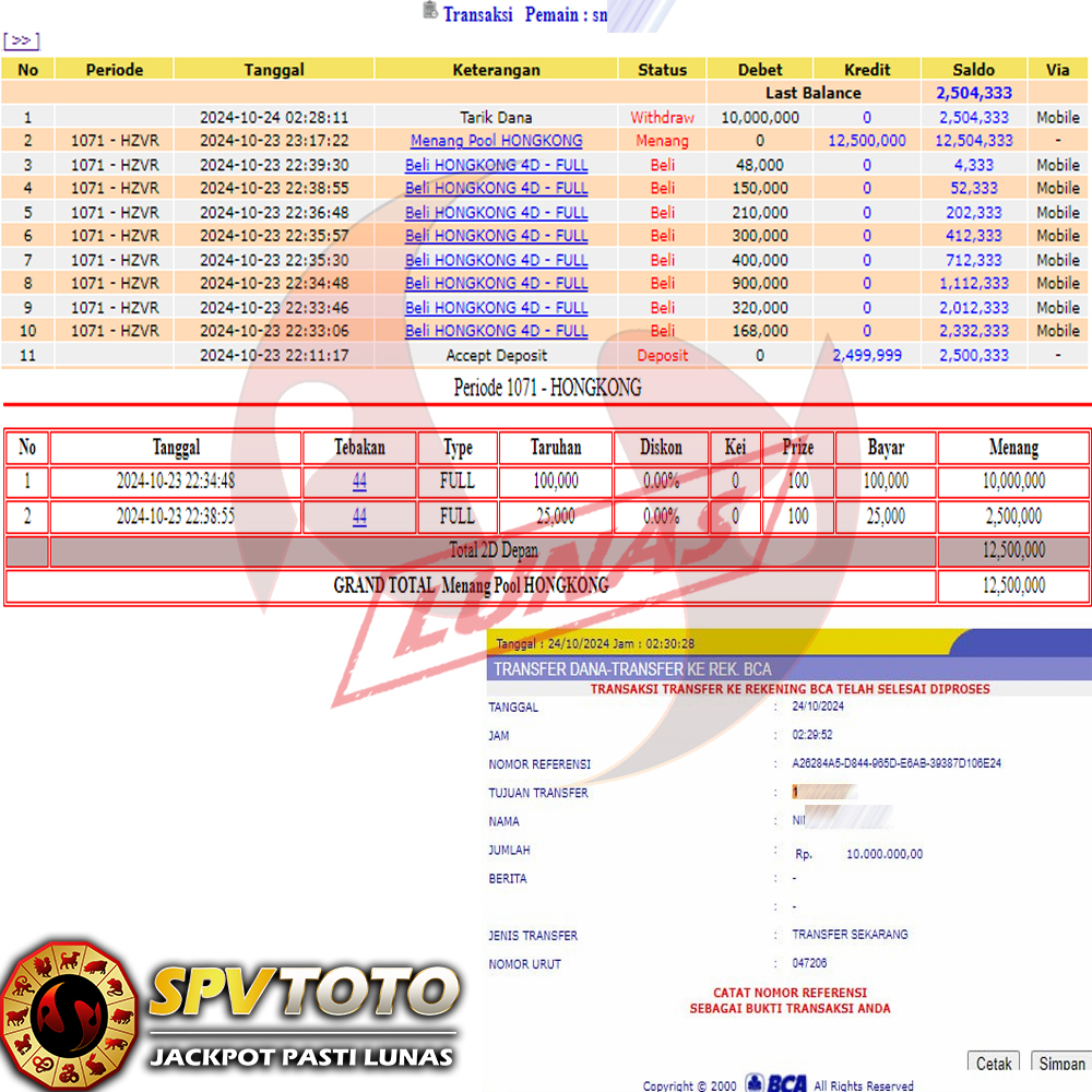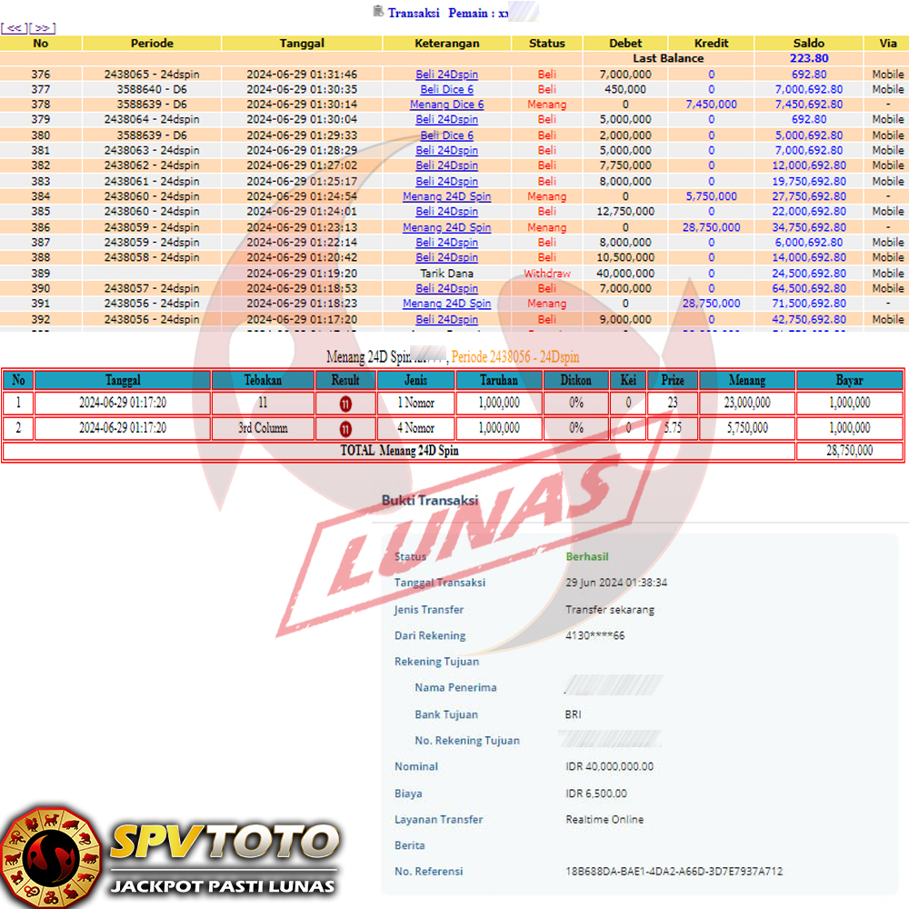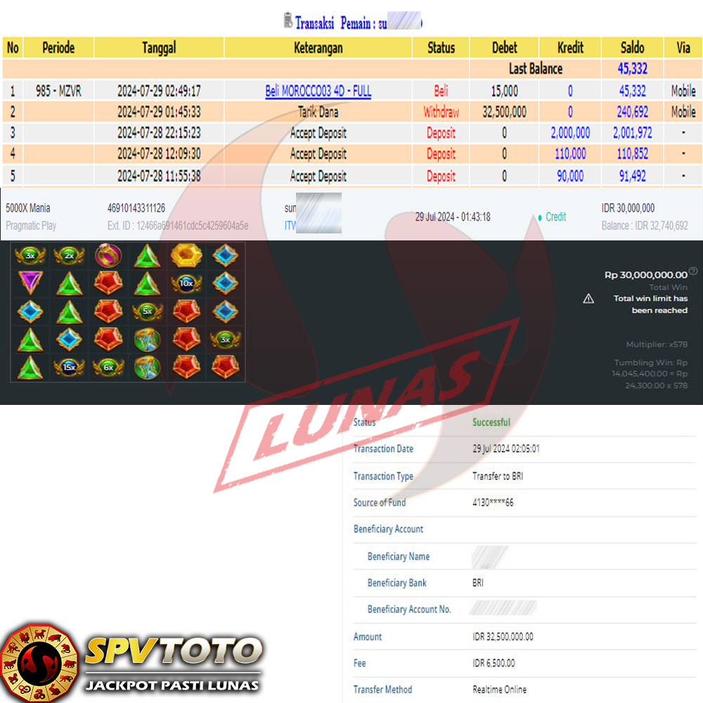 SELAMAT KEPADA MEMBER YANG MENDAPATKAN JACKPOT DI SPVTOTO