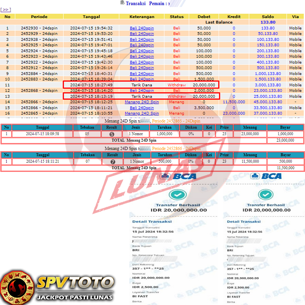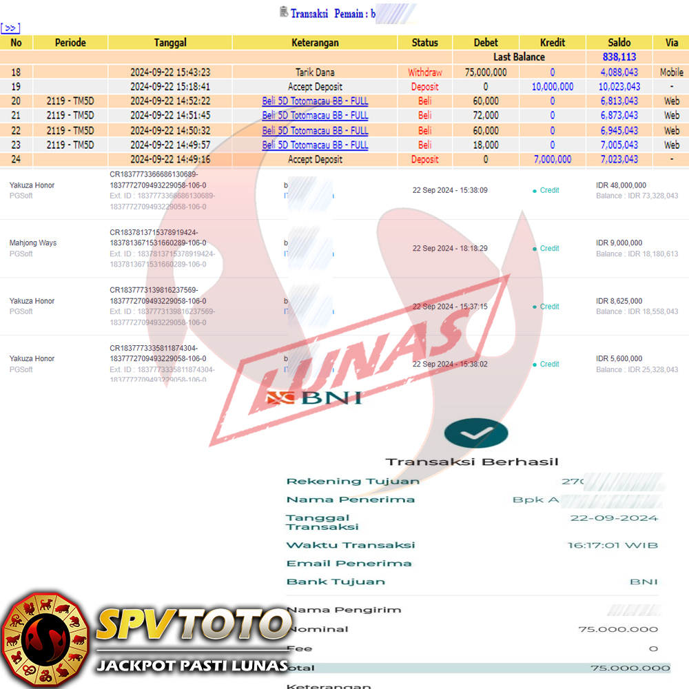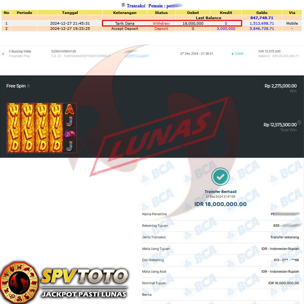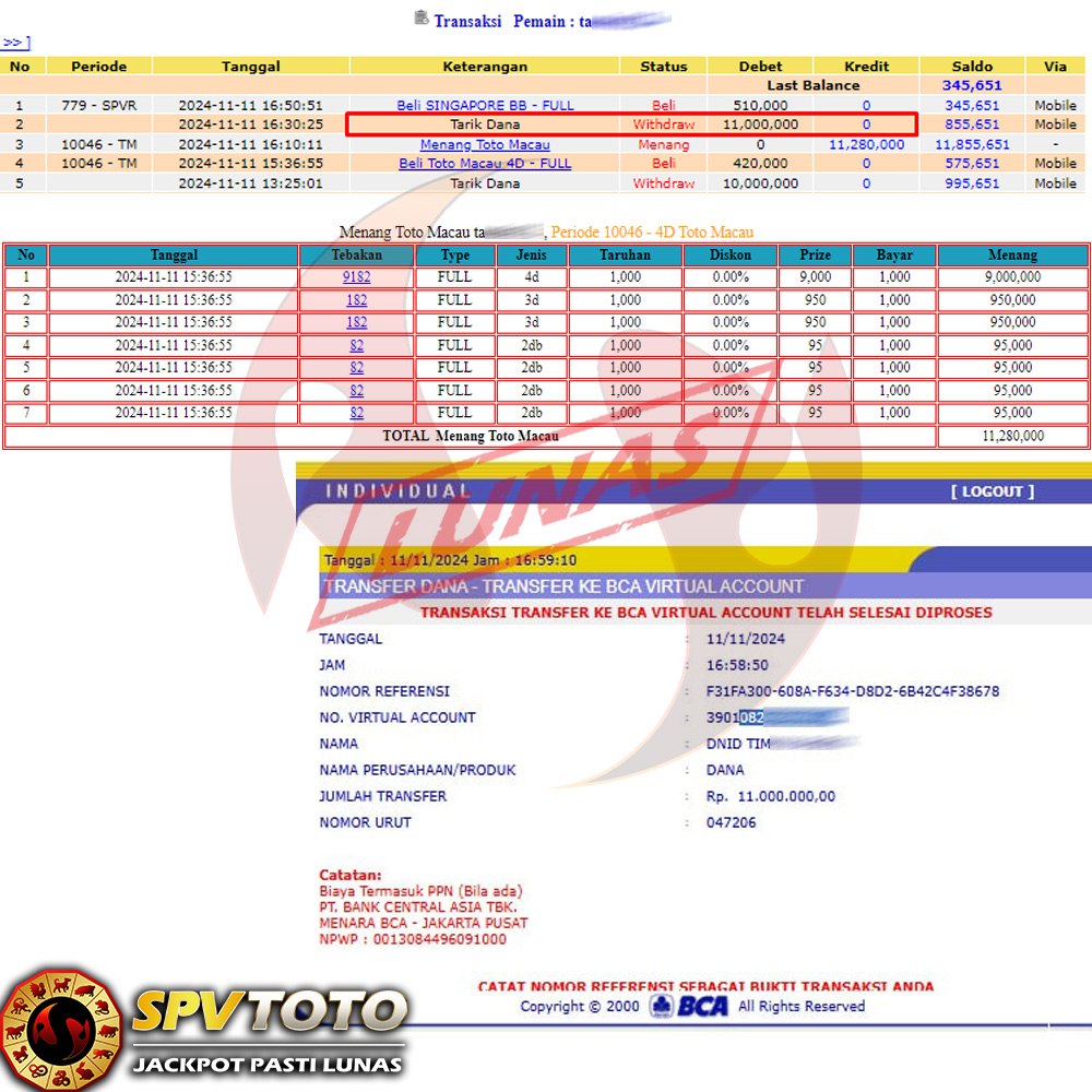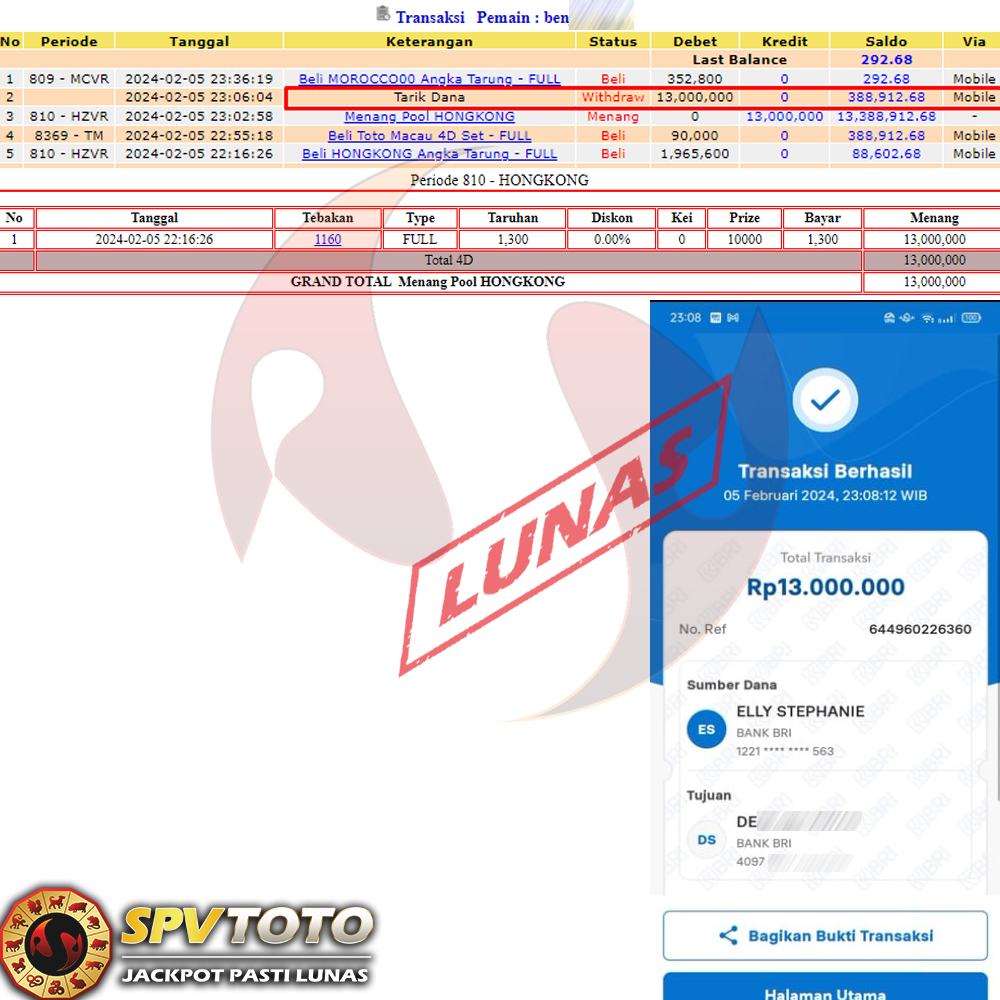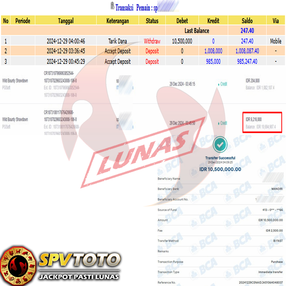 SELAMAT KEPADA MEMBER YANG MENDAPATKAN JACKPOT DI SPVTOTO