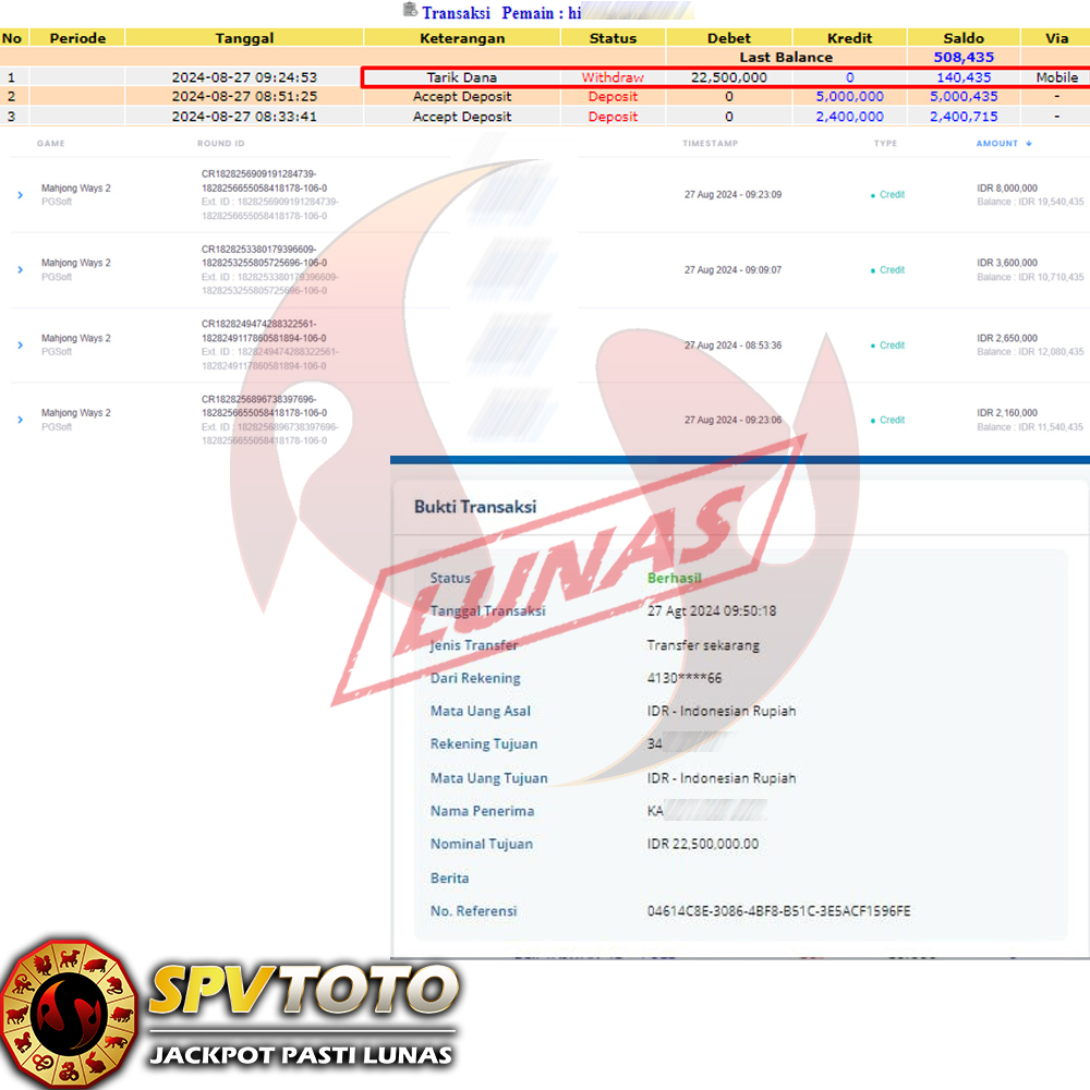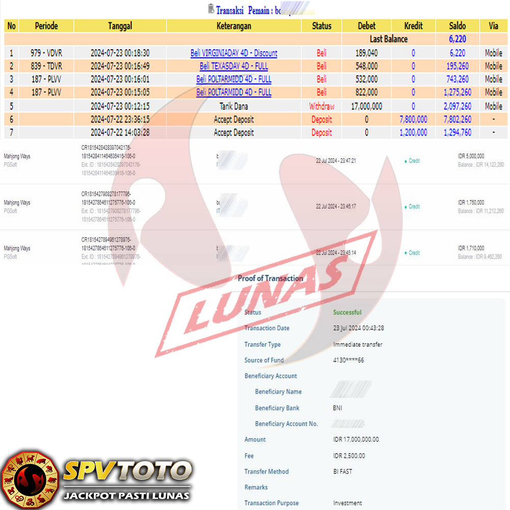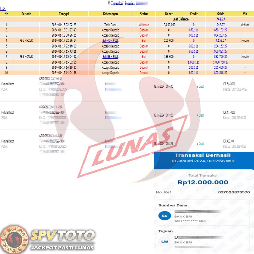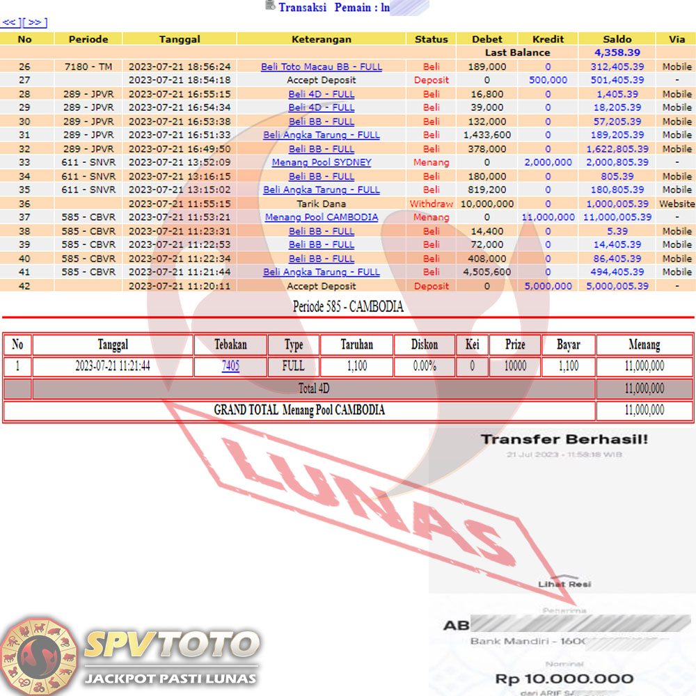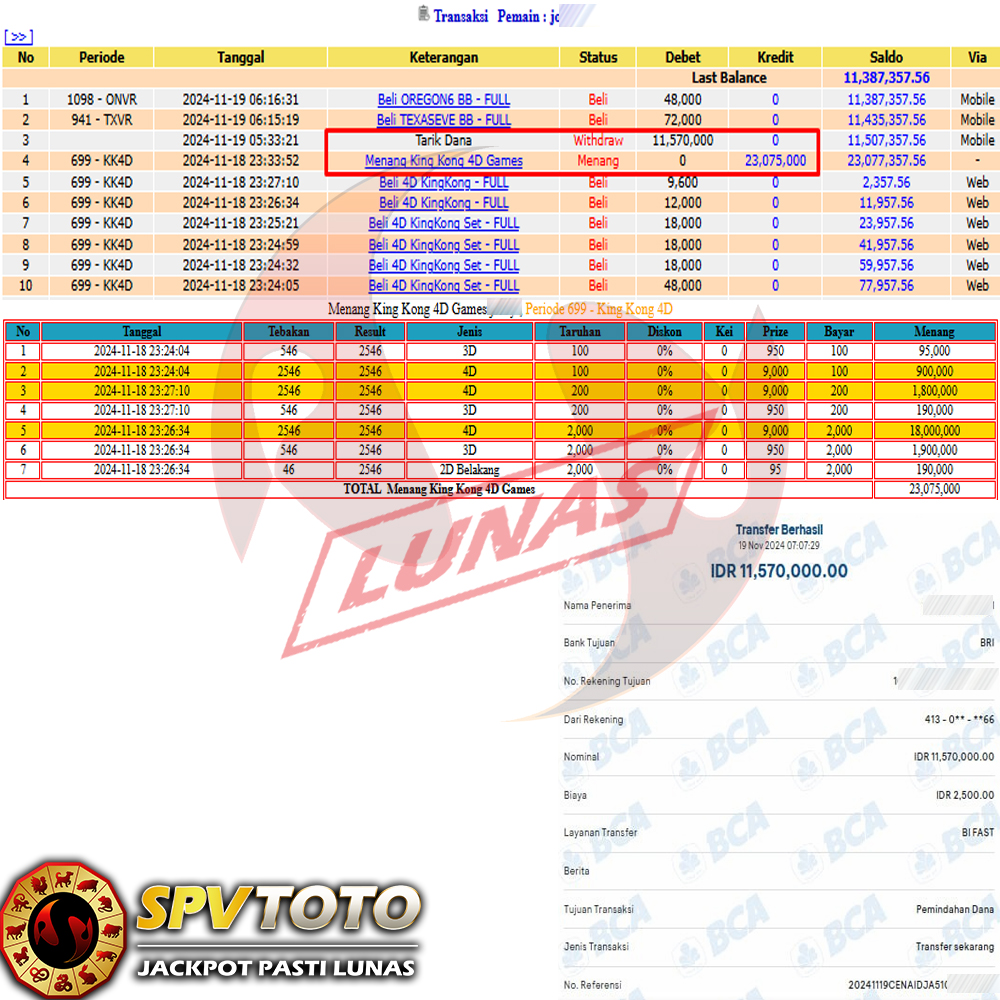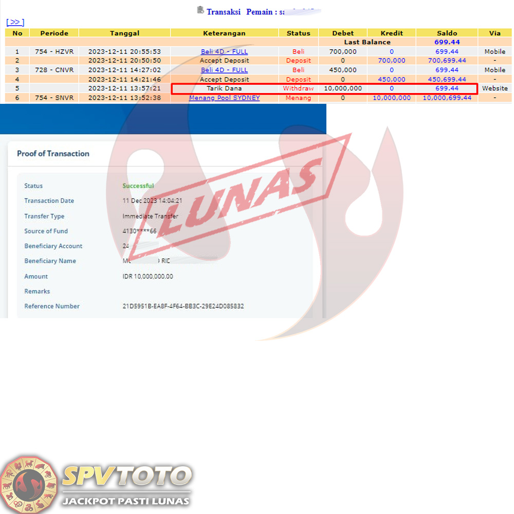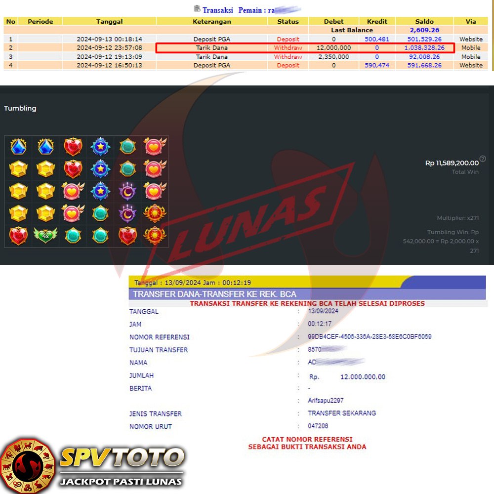 SELAMAT KEPADA MEMBER YANG MENDAPATKAN JACKPOT DI SPVTOTO