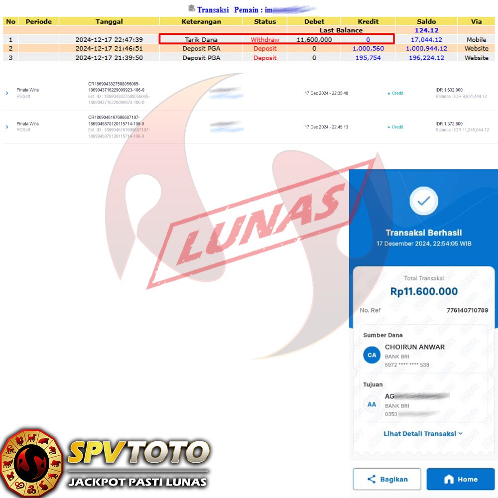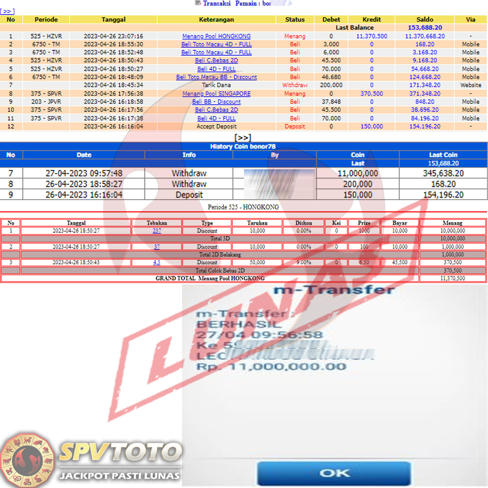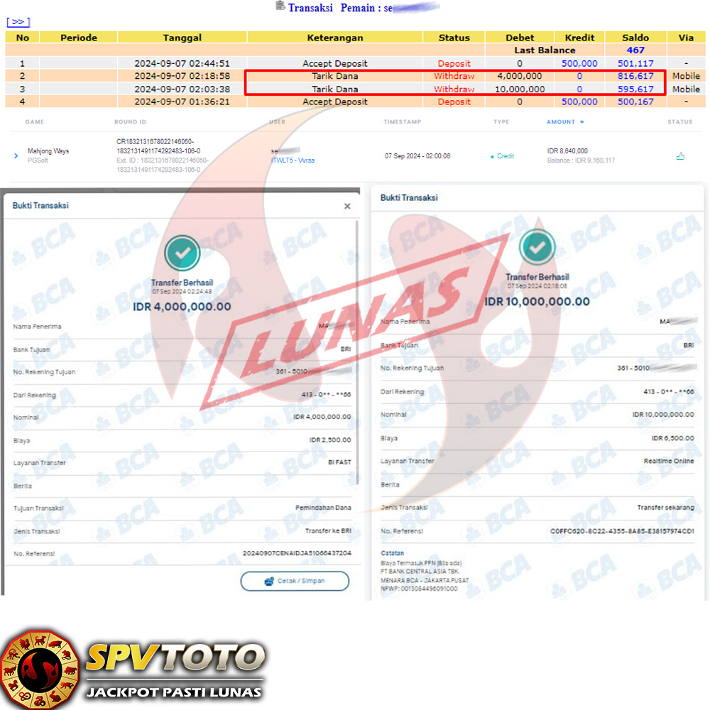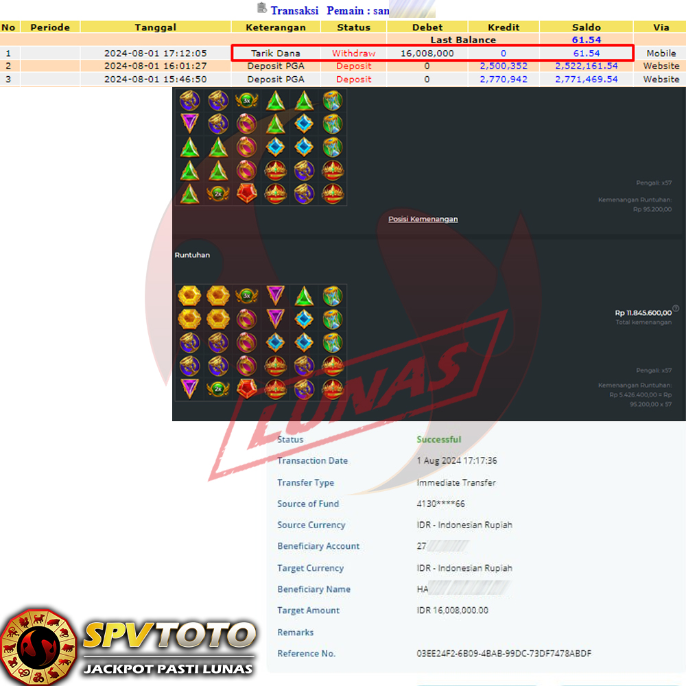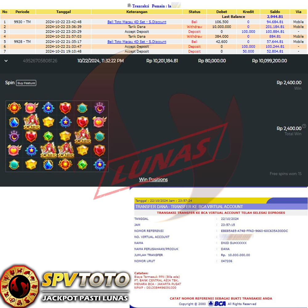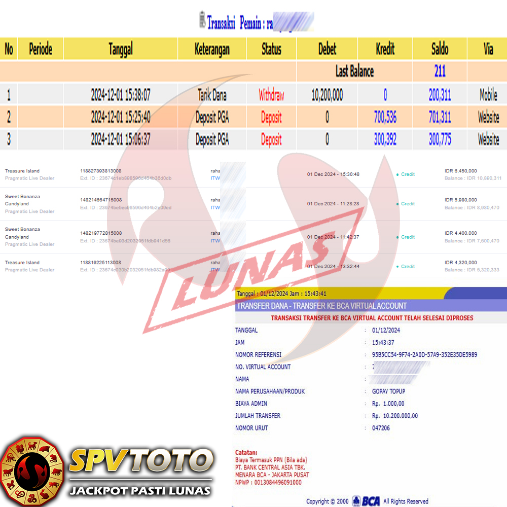 SELAMAT KEPADA MEMBER YANG MENDAPATKAN JACKPOT DI SPVTOTO
