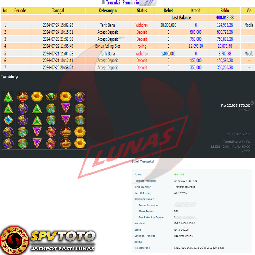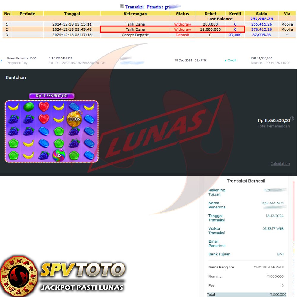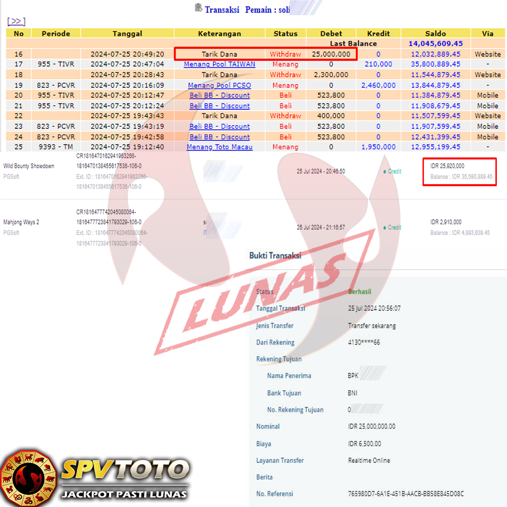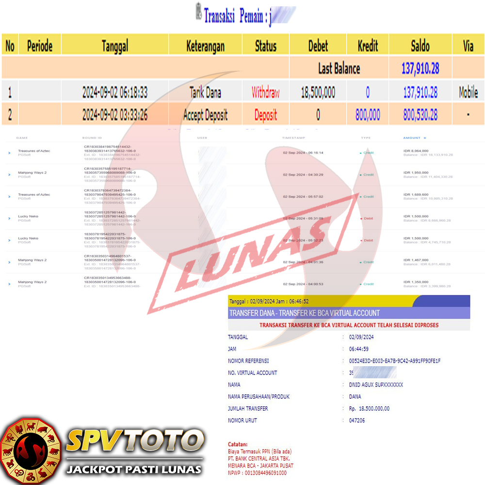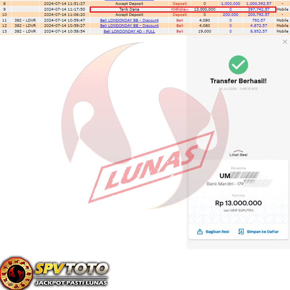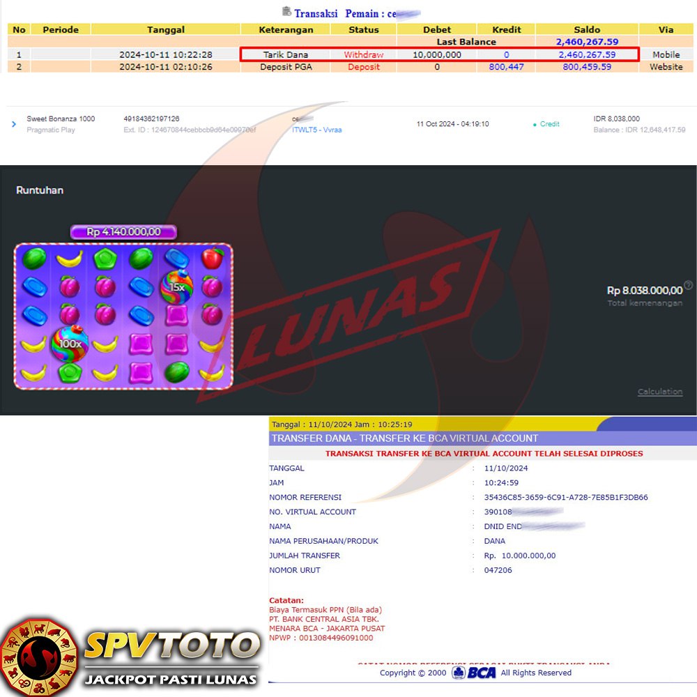 SELAMAT KEPADA MEMBER YANG MENDAPATKAN JACKPOT DI SPVTOTO