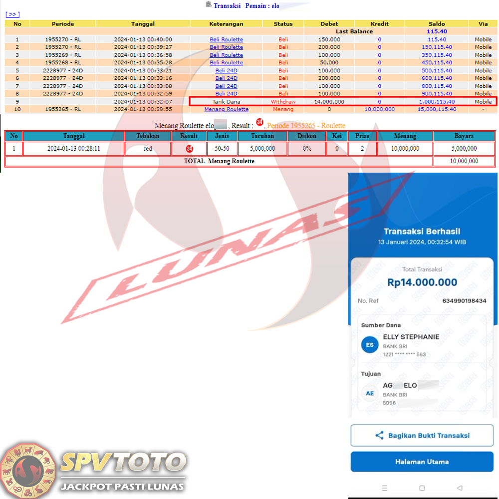MELAKUKAN PENARIKAN RP. 14.000.000 JT!!!!!!!!!