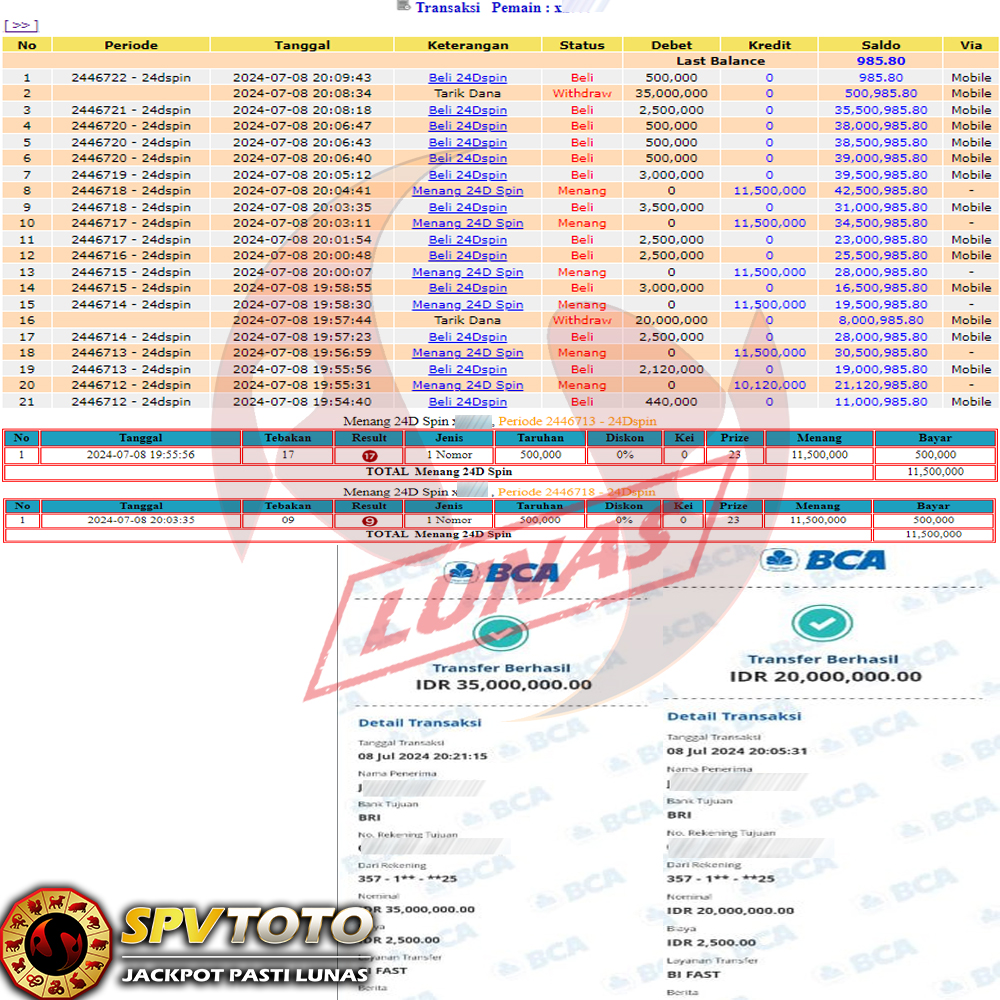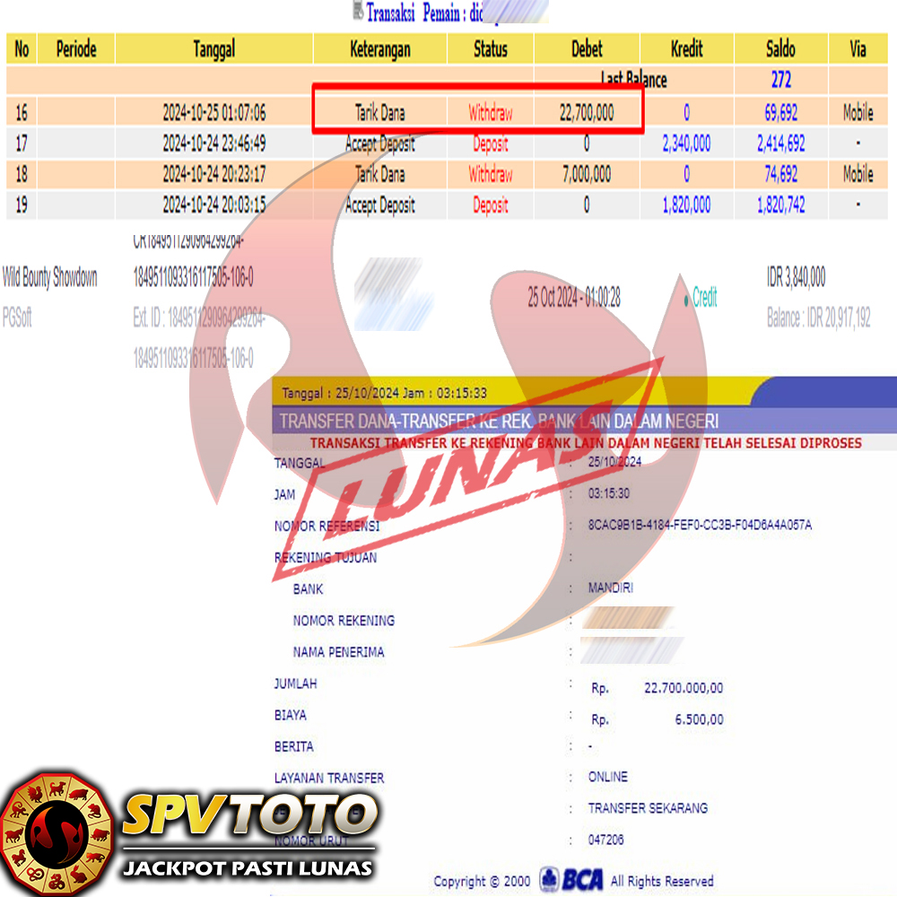 TRANSFER TELAH DI PROSES !! DAN MENDARAT MULUS KE REKENING ANDA YAH BOSSKU , WD BERAPAPUN DI SPVTOTO DI BAYAR LUNAS !! TANPA BASA BASI!!!